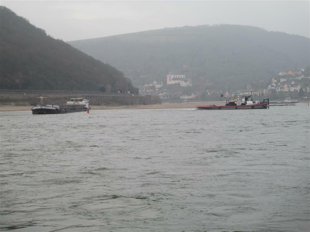 Kleine Panne, große Wirkung: Weil der 56-Schiffsführer des mit 750 Tonnen Kunstdünger beladenen Güterschiffs mit dem Pullover am Ruderstock hängen blieb und den Kurs in der Flusskrümmung nicht mehr rechtzeitig korrigieren konnte, fuhr sich sein Schiff gegen 7 Uhr morgens auf dem sogenannten Jungferngrund bei Oberwesel fest. Der Havarist lag komplett außerhalb der Fahrrinne, so dass der Schiffsverkehr zunächst mit verminderter Geschwindigkeit konnte. Auch die Hülle des Güterschiffs blieb unversehrt, so dass keine Ladung austrat. Nachdem ein Versuch des Havaristen, sich aus eigener Kraft freizufahren, fehlschlug, wurde ein Schleppboot angefordert, das gegen 8.45 Uhr an der Unfallstelle eintraf. Gegen 9.45 Uhr, mussten jedoch die Versuche, den Havaristen freizuschleppen, erfolglos abgebrochen werden. Aufgrund des Tiefgangs des Havaristen (1,93 Meter) und der niedrigen Pegelstände war es nicht ohne Leichterschiff (Schiff das einen Teil der Ladung des Havaristen übernehmen kann) möglich, das GMS freizuziehen. Nachdem anschließend bis 12 Uhr rund 150 Tonnen Künstdünger vom Havaristen geleichtert und mittels eines Baggerschiffs umgeladen werden konnten, schwamm der Havarist auf. Mit Hilfe eines Vorspannbootes (Schleppschiff) konnte der Havarist anschließend freigezogen werden. Der Rückumschlag des Kunstdüngers erfolgte in Höhe Ortslage St. Goar und konnte gegen 14.15 Uhr abgeschlossen werden. Das Güterschiff setzte danach die Talfahrt nach Magdeburg fort.