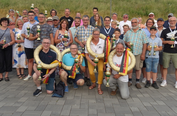 Nachdem dann alle eingetroffen waren machten sich die Ersten schon auf den Weg zum Simmersee. Dort war ein leckeres Abendbuffet in der Domänenscheune vorbereitet. So ein Tag mit viel frischer Luft macht hungrig und durstig. Aber mit einem abwechslungsreichen Angebot an Speisen und Getränken konnten sich alle stärken und auf die anschließende Siegerehrung vorbereiten. Dabei wurden die Teammitglieder für die Leistungen und Erfolge in den verschiedenen Startgruppen und Klassen mit Pokalen ausgezeichnet. Höhepunkt war die Übergabe der Siegerkränze an die Gesamtsieger der 12. Schinderhannes-Classic.