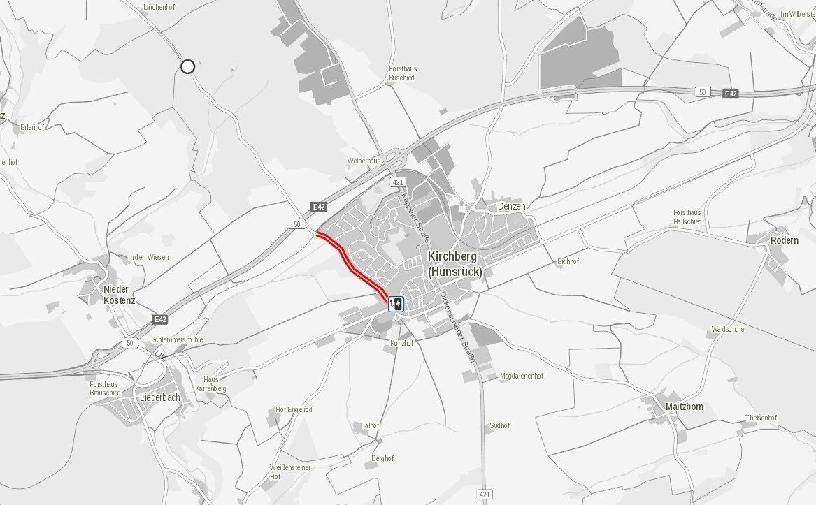 Die ausgeschilderte Umleitung erfolgt von Kirchberg über die Bundesstraße (B) 421 und die K 12 über Kludenbach und Todenroth zur K 11 Metzenhausen und umgekehrt.