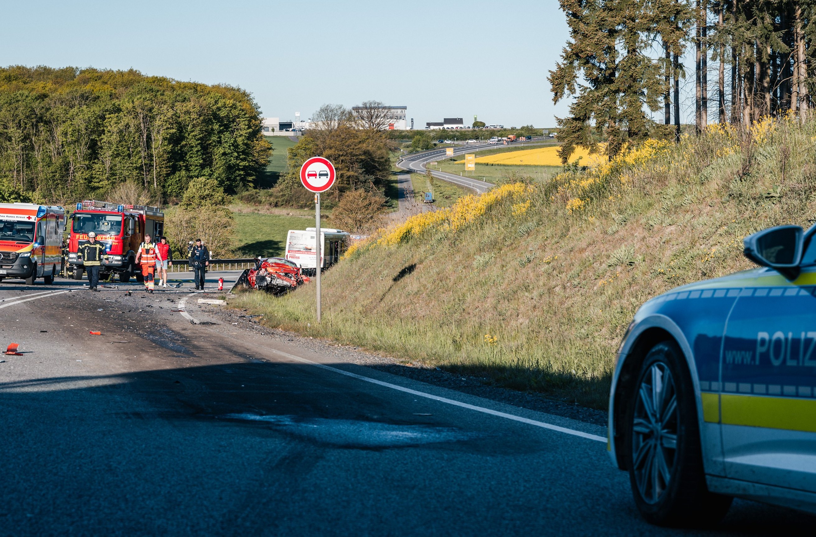 Der Pkw kam nach der Kollision im Straßenbankett neben der Leitplanke zum Stehen, der Bus rund 200 Meter weiter auf der Fahrbahn. An beiden Fahrzeugen entstand wirtschaftlicher Totalschaden. Zum genauen Unfallhergang ermittelt die Polizei. Die B327 bleibt zunächst in beide Fahrtrichtungen gesperrt.