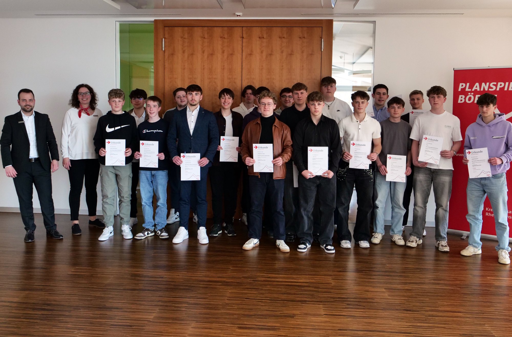 Im Geschäftsgebiet der KSK Rhein-Hunsrück wurden nun die Gewinneteams ausgezeichnet. In der Depotgesamtwertung steigerte das Gewinner-Team »robin.hn« des Beruflichen Gymnasiums Simmern das Startkapital von 50.000 Euro auf 63.147,36 Euro. Platz 2 belegte die Gruppe »Dividenden Dudes« des Herzog-Johann-Gymnasiums (HJG) Simmern mit einem Depotzuwachs von über 20 Prozent. Rang drei ging an das Team »Das Kaiser-Duo« der IGS Kastellaun. Platz 4 und 5 belegten Schüler des Kant-Gymnasiums Boppard der BBS Simmern.