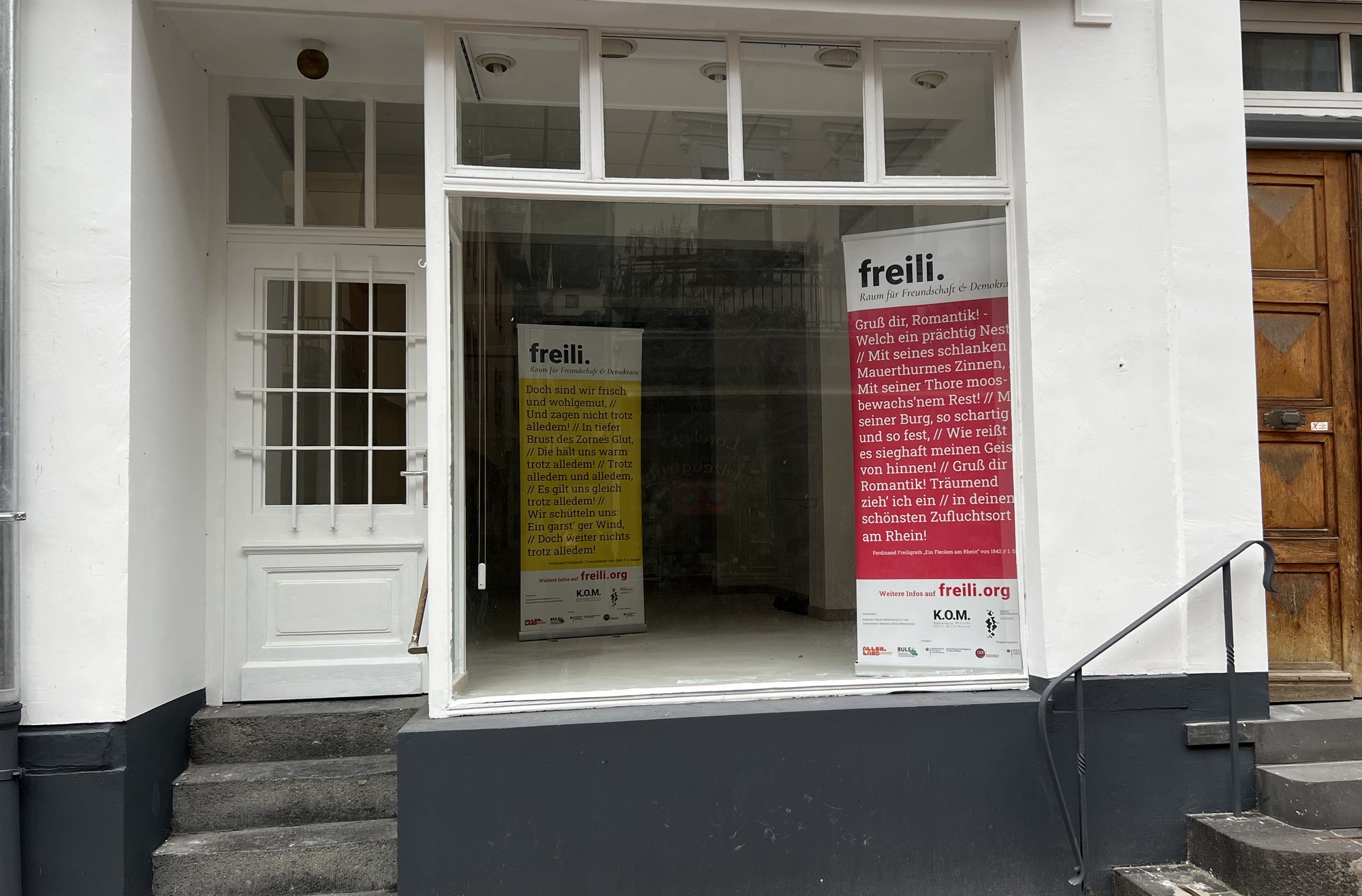 Der Verein »Kulturnetz Oberes Mittelrheintal« (K.O.M.) hat im Rahmen seines Projekts »freili. - Raum für Freundschaft und Demokratie« zwei Monate lang die Gelegenheit, einen Bürgertreff im Ladenleerstand Heerstraße 106 in St. Goar einzurichten. Ob daraus eine Institution werden kann, hängt vor allem davon ab, ob sich genügend Bürgerinnen und Bürger für dieses Experiment zusammenfinden. Der Verein möchten mit diesem Treff auf längere Sicht einen Begegnungsort schaffen.