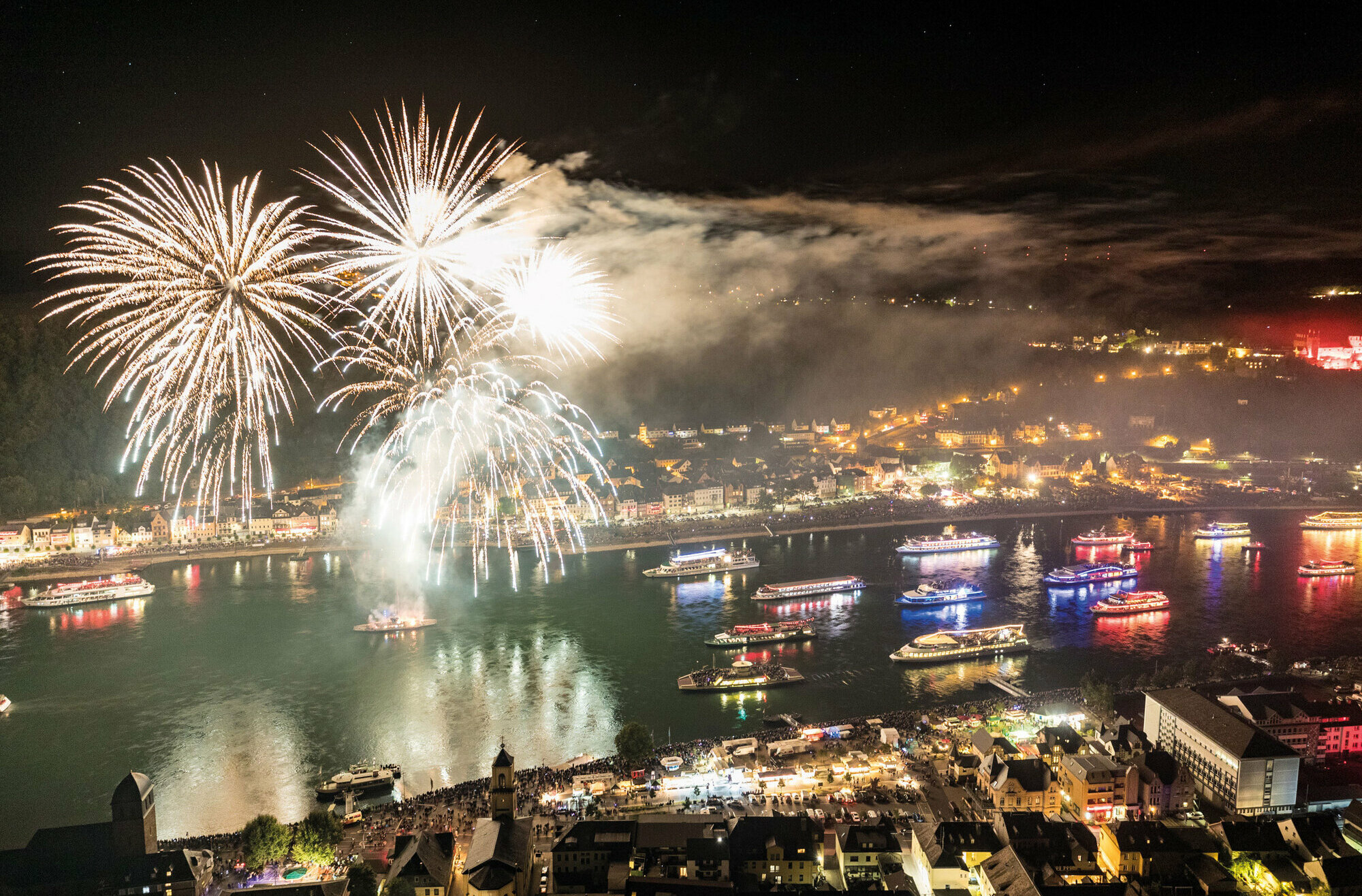 Samstags hat die Stadt tagsüber diverse Orchester des Landesmusikverbandes Rheinland-Pfalz zu Gast, die Kostproben ihres Könnens von vormittags bis zum frühen Abend auf den drei Bühnen zum Besten geben werden. Los geht‘s um 10 Uhr. Für Speis und Trank wird an allen Festorten gesorgt sein, wobei Freunde des deftig Gegrillten wie gewohnt ebenso auf ihre Kosten kommen werden wie Vegetarier. Höhepunkt ist dann das imposante Feuerwerk am Samstag ab 21 Uhr, welches von Burg Rheinfels und dem Rhein aus abgeschossen wird. Dazu wird sich der festlich erleuchtete Schiffskorso auf Höhe der Stadt zusammenfinden.
