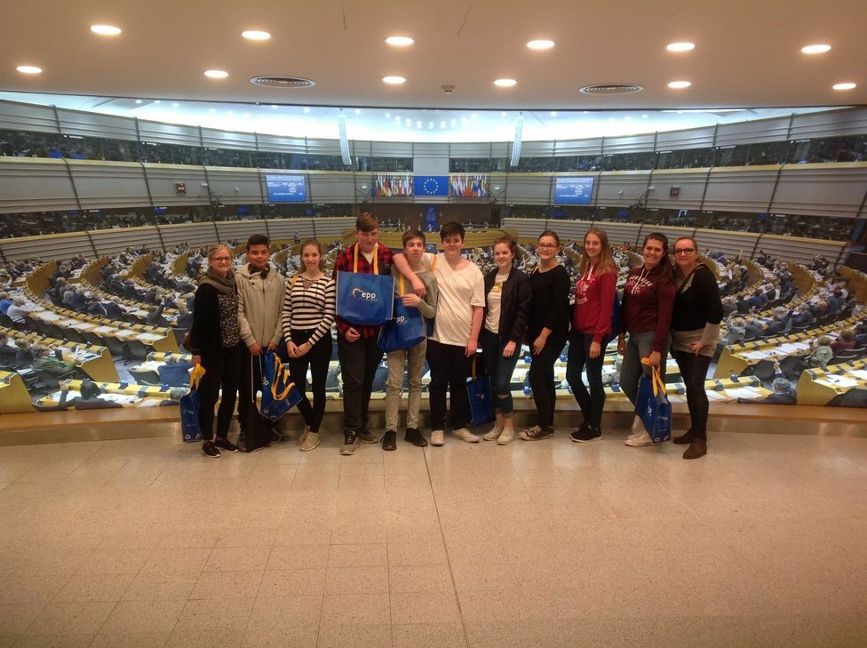 Auf dem Programm standen der Besuch des Mini-Europe Parks, die Besichtigung des Atomiums, der Besuch des Parlaments, das Treffen mit einer Abgeordneten, der Besuch des Hauses der Landesvertretung in Rheinland-Pfalz sowie das Erkunden der Europastadt Brüssel. Das Highlight der Informationsfahrt stellte der Besuch des EU-Parlaments dar. Zum Gespräch trafen sich die Schülerinnen und Schüler dort mit Frau Miriam Christine Heimann, der Leiterin des Büros der EU-Abgeordneten Birgit Collin-Langen aus Bingen. Frau Heimann stellte sich den kritischen Fragen der europainteressierten Schülerinnen und Schüler und diskutierte mit der Gruppe über aktuelle Themen in Europa und über die Politik der Europäischen Union. Das Informationsgespräch mit einer Referentin des Besucherdienstes lieferte weitere interessante Einblicke in das EU-Parlament. Auf der Besuchertribüne des Plenarsaals konnten die Schülerinnen und Schüler die Abgeordneten schließlich bei ihrer Arbeit beobachten, deren Argumentationen lauschen und die Politik der Europäischen Union live erleben. Zusätzlich wurde die Gruppe ins Haus der Landesvertretung Rheinland-Pfalz eingeladen und informierte sich dort über deren europapolitische Arbeit. Das enorme Interesse, das Engagement und die aktive Beteiligung der Schülerinnen und Schüler machten die Fahrt zu einem großen Erfolg und brachten den jungen Teilnehmern und Teilnehmerinnen die Ideen und die Politik der EU auf authentische Weise näher.