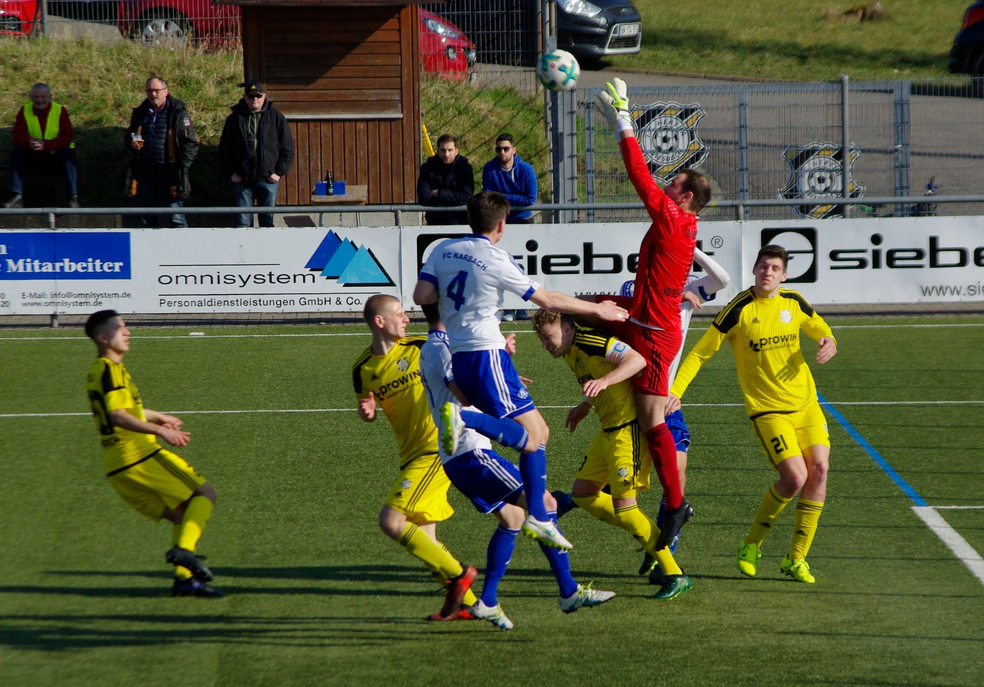 Von Arno Boes. Überraschend hatte Trainer Torsten Schmidt in der Abwehr auf Julian Hohns verzichtet, um mit einer entsprechenden Systemumstellung mehr Druck im Mittelfeld zu erzeugen. Selbstkritisch räumte Schmidt später ein, dass dies wohl ein Fehler war, denn schon nach 70 Sekunden erzielten die Wiesbacher fast unbedrängt mit einem Kopfball die 1:0-Führung. Die glich Michael Kohns in der 15. Minute aus und bis kurz vor Ende der ersten Halbzeit spielten die Karbacher auch gut mit. Aber zwei Minuten vor der Pause der ansonsten hektischen Partie standen die Herthaner wieder in Überzahl im Karbacher Strafraum und machten das 2:1. Hohns war inzwischen im Spiel, aber die Gastgeber hatten da doch deutlich Übergewicht im Spiel nach vorne. Nach der Pause zeigten die Hunsrücker Motivation und den Willen, das Spiel vielleicht nochmal zu drehen. Aber mit einem Doppelschlag in der 63. und 71. Minute stellten die Wiesbacher die Weichen endgültig auf Heimsieg. Dem eingewechselten Enrico Köppen gelang zwar zwei Minuten später noch das 4:2, das war aber dann auch schon der Endstand. Torsten Schmidt meinte nach dem Spiel: „Die Anfangsformation ohne Julian Hohns nehme ich auf meine Kappe. Aber wir haben im ersten Spiel 2018 kein Gegentor, dann eins und zwei in den folgenden Partien und hier jetzt gleich vier kassiert. Wir machen es dem Gegner derzeit viel zu leicht, in unserem Strafraum zum Abschluss zu kommen. Das müssen wir abstellen, da dürfen wir unseren Torwart Lukas Schmitt nicht so viel alleine lassen.“ Das dürfte bei den nächsten beiden Aufgaben von Bedeutung sein, denn am kommenden Samstag (31. März, 14 Uhr) geht es im Auswärtsspiel zum heimstarken FK Pirmasens. Und am 3. April steht dann das Spiel gegen den bisher starken Tabellenführer FC Homburg im Stadion in Emmelshausen an. Nach makelloser Saisonbilanz haben die Homburger zuletzt doch noch Punkte gelassen, sogar ihr Heimspiel gegen Tabellenschlusslicht SV Saar 05 verloren. In beiden Spielen haben die Karbacher aber nur eine Chance, wenn sie die in Wiesbach gezeigten Abwehrschwächen in den Griff bekommen.