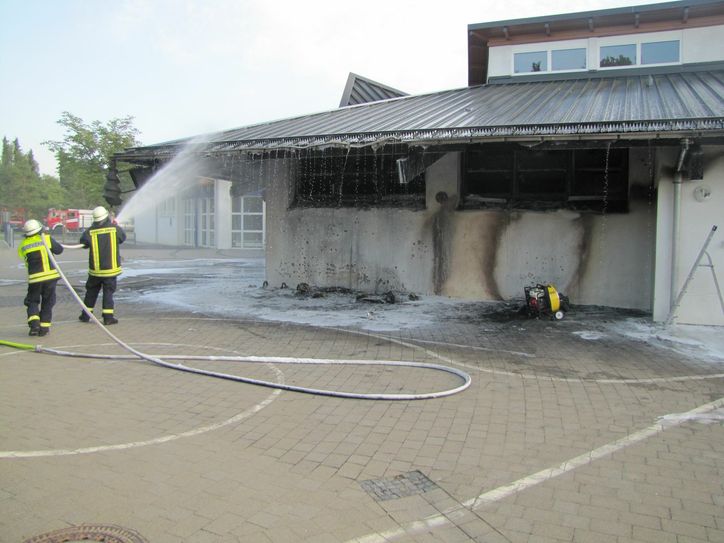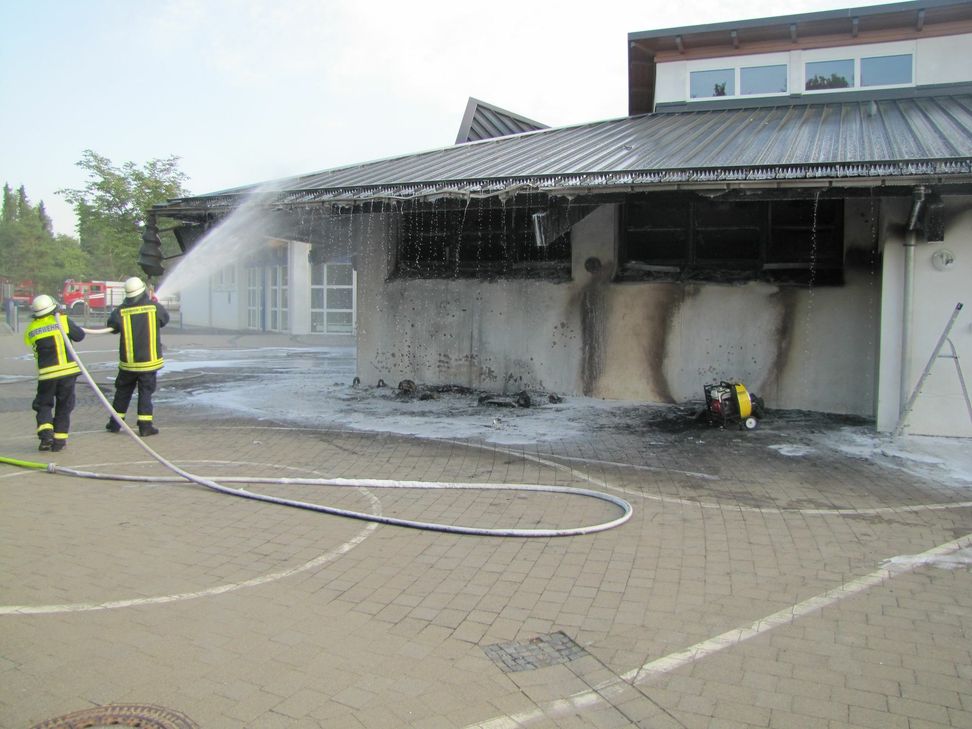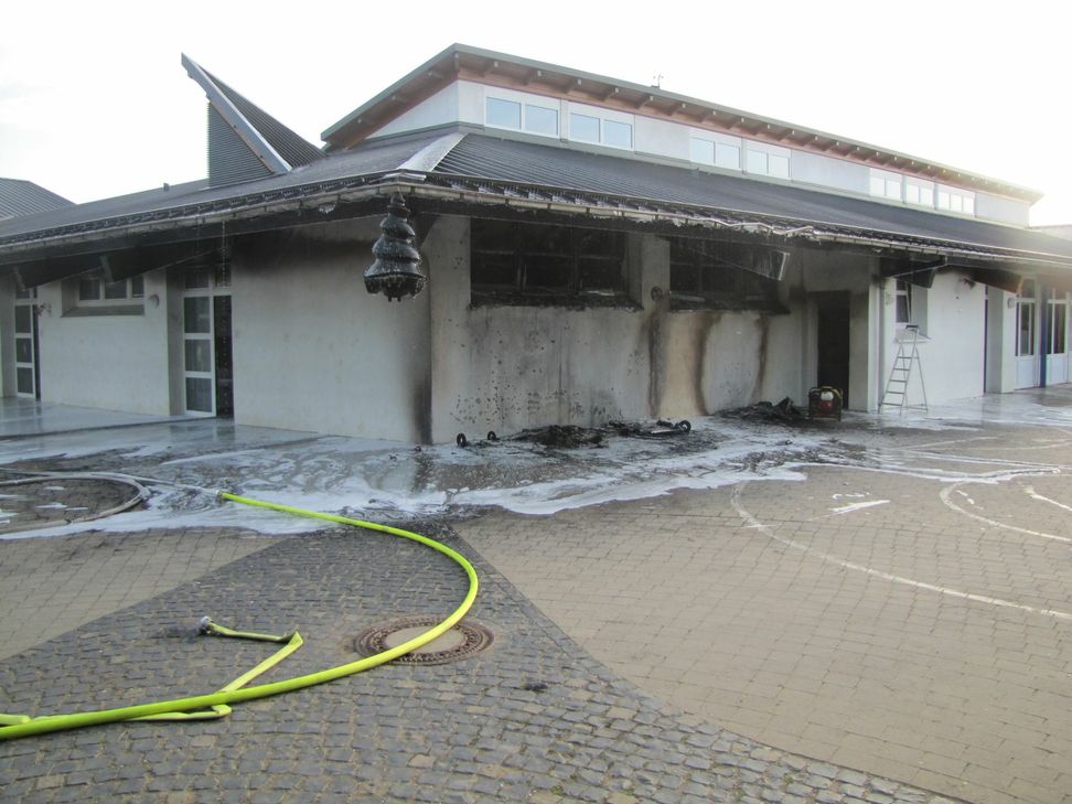 Begünstigt durch den großzügigen Dachüberstand, unter dem die Tonnen abgestellt waren konnte sich das Feuer sehr schnell auf das Gebäude ausbreiten. Beim Eintreffen an der Einsatzstelle standen vier Mülltonen und Teile der Dachunterkonstruktion in Vollbrand. Durch mehrere geborstene Fensteröffnungen breitete sich heißer Brandrauch im Gebäude aus, wodurch die Gefahr eines Totalverlustes kurz bevor stand. Durch gezielte taktische Maßnahmen der Feuerwehr konnte das Feuer unter dem Einsatz von zwei Hohlstrahlrohren unter Atemschutz schnell unter Kontrolle gebracht und der Schaden auf das vorgefundene Ausmaß begrenzt werden. Nach etwa drei Stunden waren die Löscharbeiten und die erforderlich gewordenen, umfangreichen Belüftungsmaßnahmen beendet. Im Einsatz waren die Feuerwehren aus Simmern, Kümbdchen-Keidelheim und Tiefenbach mit insgesamt 36 Kräften. Über die Brandursache ist noch nichts bekannt.