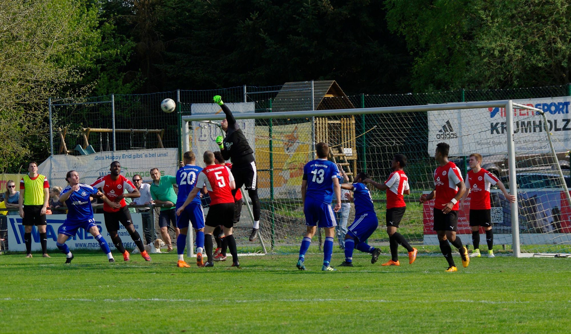Von Arno Boes. „Noch sind wir nicht durch. Wenn wir heute verlieren und es in den restlichen fünf Saisonspielen ähnlich läuft, dann kann uns noch der Abstieg drohen“, meinte FC-Präsident Daniel Bernd in der Halbzeitpause. Zu diesem Zeitpunkt führten die Gäste aus Idar-Oberstein durch einen Foulelfmeter in der 32. Minute mit 0:1. Da man vier Tage zuvor mit einer enttäuschenden Leistung auf dem eigenen Platz dem TuS Mechtersheim mit 1:4 unterlegen war, ist rein rechnerisch noch alles möglich. Denn die Liga soll wieder von 19 auf 18 Teams verkleinert werden. Und da aus der Regionalliga wohl einige Teams in die Oberliga RLP/Saar absteigen, könnte am Ende der Saison sogar der 14. der Tabelle in die Landesliga verdrängt werden. Das hatte Torsten Schmidt wohl seinem Team in der Halbzeitpause noch einmal klar gemacht, denn im zweiten Durchgang war zumindest bei den Karbacher etwas mehr Einsatz zu sehen. Auf insgesamt fünf Positionen musste Schmidt wegen Verletzungen und der Sperren von Rinker und Göderz aus dem Mechtersheim-Spiel umbauen. Als sich dann Tim Puttkammer in der 6. Minute bei einem unglücklichen Zusammenprall mit Idars Torhüter am Knie verletzte und nur noch bis zur 30. Minute durchhielt, war von einem geordneten Aufbauspiel der Karbacher in Durchgang eins nichts mehr zu sehen. Auch nach der Pause waren Torchancen für die Hunsrücker eher Zufallsprodukte. In der 73. Minute brachte dann Sören Klappert eine von Leo Kabashi getretene Ecke zum 1:1-Ausgleich ins Tor. Mit einem Punkt wäre man angesichts des insgesamt schwachen Spiels schon zufrieden gewesen, aber die Gäste erzielten in der 88. Minute erneut die Führung zum 1:2. Zwischendurch hatten sie aber durch einige Behandlungen nach eher harmlosen Fouls sehr offensichtlich auf Zeit gespielt, weshalb es fünf Minuten zusätzliche Spielzeit gab. Und in der letzten schlug erneut Kabashi eine hohe Flanke nach vorne, Enrico Köppen nahm sie auf und erzielte den Ausgleich zum 2:2-Endstand. Bei Kabashi und Geburtstagskind David Eberhard, die beide als beste Spieler bei Karbach herausragten, durfte sich das Team bedanken, dass doch noch der wichtige Punkt gerettet wurde.