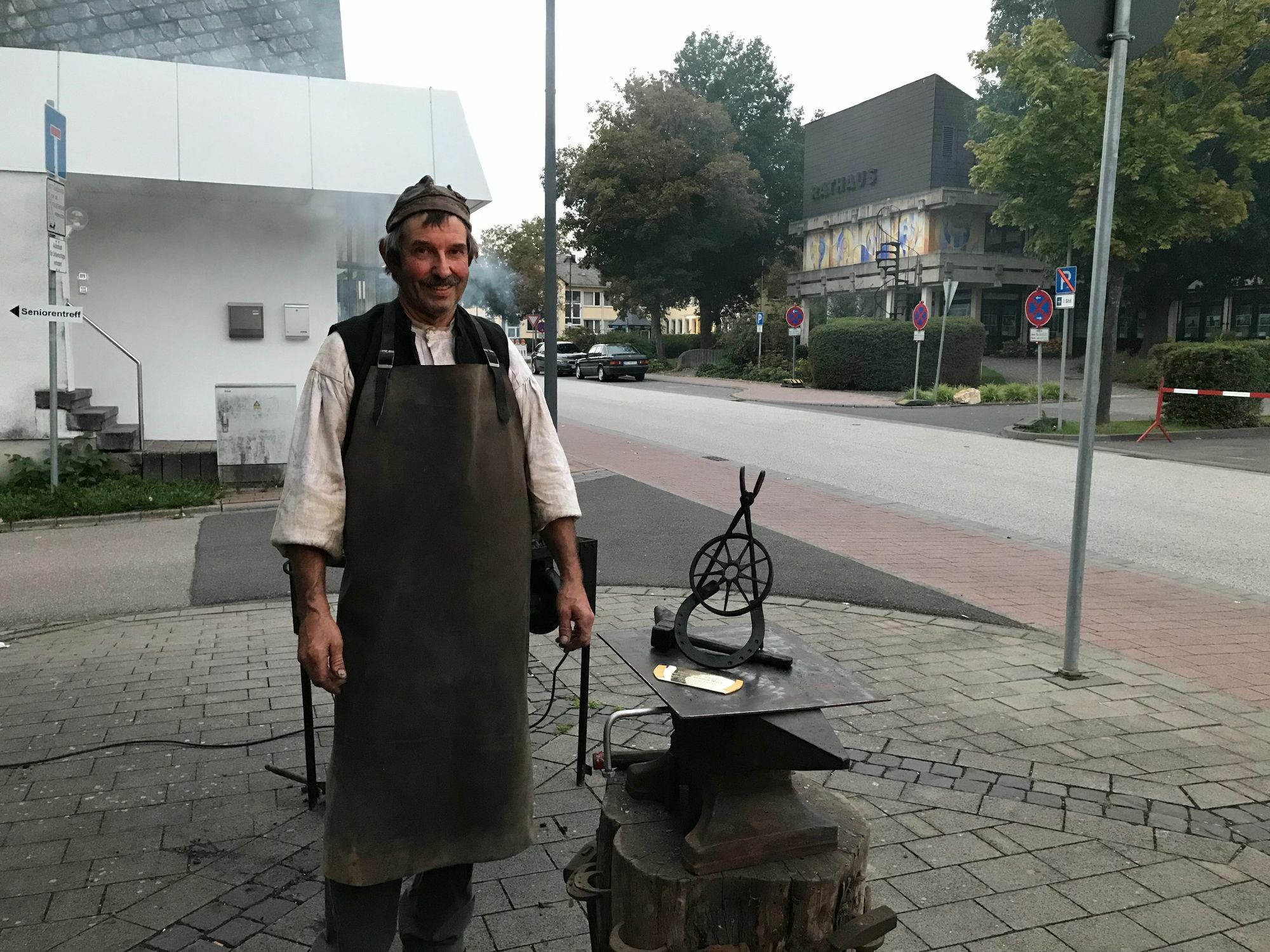 Der Preis wurde zuvor von Rüdiger Kriese (Foto 1 bis 5) – der Schmied aus „Die andere Heimat“ – live in Simmern am Festspielplatz geschmiedet. Er hatte die Auszeichnung auch selbst entworfen. Mehr dazu erzählt er in unserem Video.