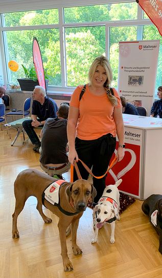Tiergestützte Therapie wird bereits in vielen deutschen Kliniken eingesetzt. Therapiehunde können Angstzustände, Sprach- oder Sozialstörungen und vielfältige Stresssymptome lindern. In der palliativmedizinischen Versorgung stehen vor allem der psychologische Effekt und das seelische Wohlbefinden im Vordergrund. „Sobald die Therapiehunde auf die Station kommen, ändert sich die Atmosphäre“, weiß auch Claudia Drobeck. Sie ist die Besitzerin der beiden Hunde und arbeitet seit 26 Jahren als Physiotherapeutin in der Hunsrück Klinik. „Oft sind die Patienten sehr traurig, depressiv und kommunizieren wenig. Spaiki und Chela erspüren die Stimmungen der Menschen. Ganz unvoreingenommen und spielerisch nehmen sie Kontakt auf und vermitteln nur durch ihre Anwesenheit Wärme, Mitgefühl und Sicherheit.“ Spaiki und Chela sind nicht die ersten Hunde von Claudia Drobeck, aber die ersten, die sie als Therapiehunde hat ausbilden lassen. Ein ehemaliger Patient brachte sie auf die Idee für die neuen tierischen Mitarbeiter: „Er war Hundetrainer und ich habe ihm gerne Fotos und Videos der beiden Hunde gezeigt, um ihn aufzumuntern. Er hat mir viele Tipps gegeben und mir schließlich die Ausbildung bei der Malteser Therapiehunde-Staffel ans Herz gelegt.“Tiergestützte Therapie individuell auf Patienten abgestimmt
