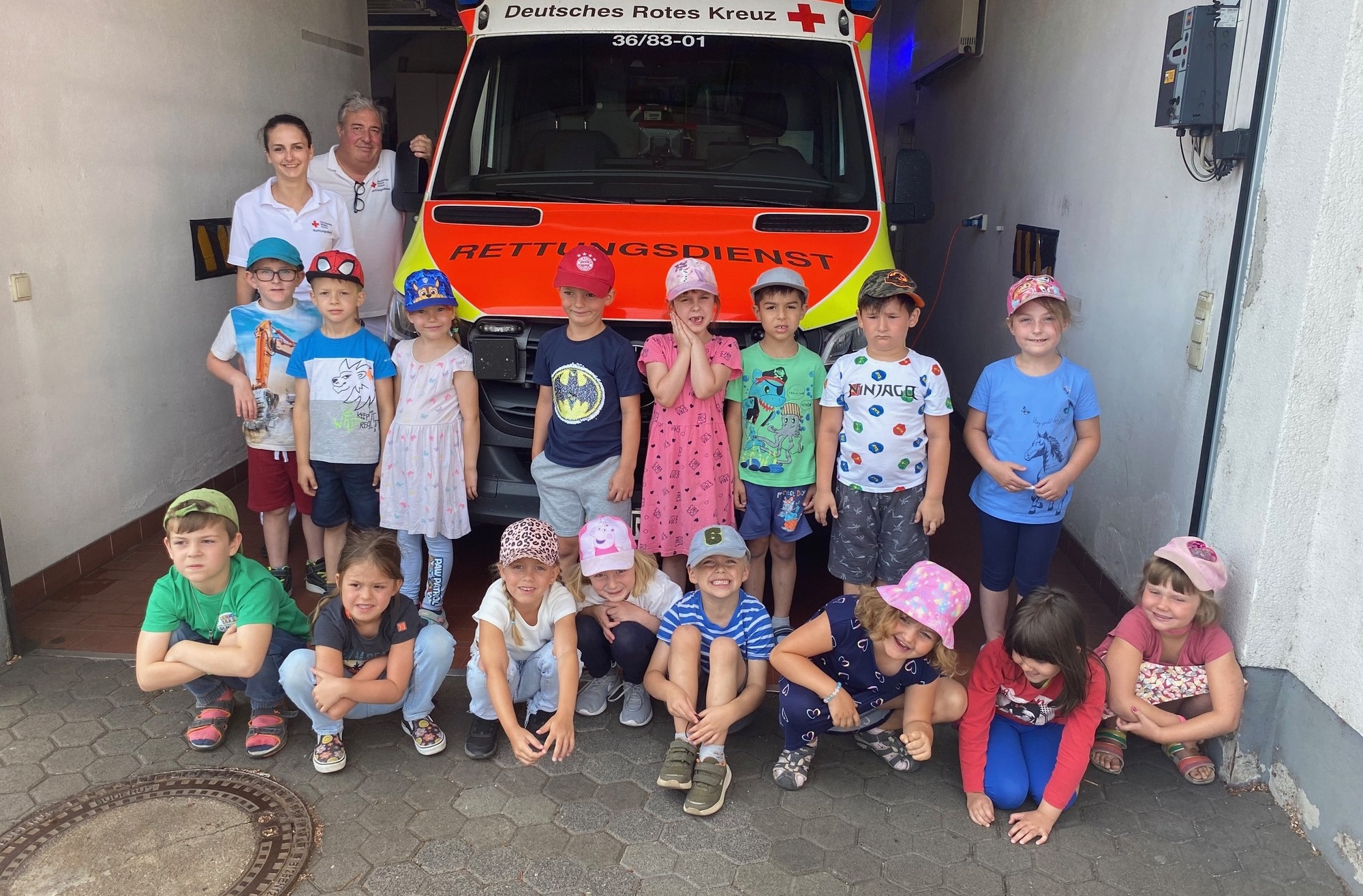 Ganz spielerisch wurden dabei auch mögliche Hemmungen abgebaut. Der DRK-Kreisverband Rhein-Hunsrück e.V. hat in Boppard ein Notarzteinsatzfahrzeug, einen Rettungstransportwagen und einen Krankentransportwagen stationiert. Am Rettungswagen erfuhren die Kleinen etwa, wie die hydraulische Trage und das EKG funktionieren.