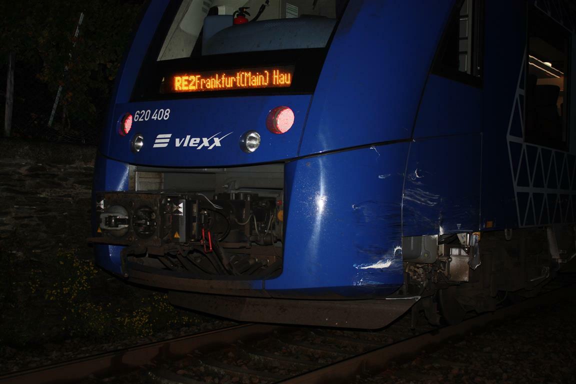 Glück im Unglück: Ein Regionalzug hat heute morgen zwischen Boppard und Spay, kurz nach 6 Uhr, einen Pkw erfasst. Der 23-jährige Fahrer des Pkw war zuvor mit seinem Fahrzeug von der Fahrbahn abgekommen, überschlug sich und blieb auf den parallel zur B9 verlaufenden Gleisen liegen. Der junge Mann konnte sein Auto leichtverletzt verlassen, bevor ein Richtung Boppard fahrender Zug den Pkw streifte.
