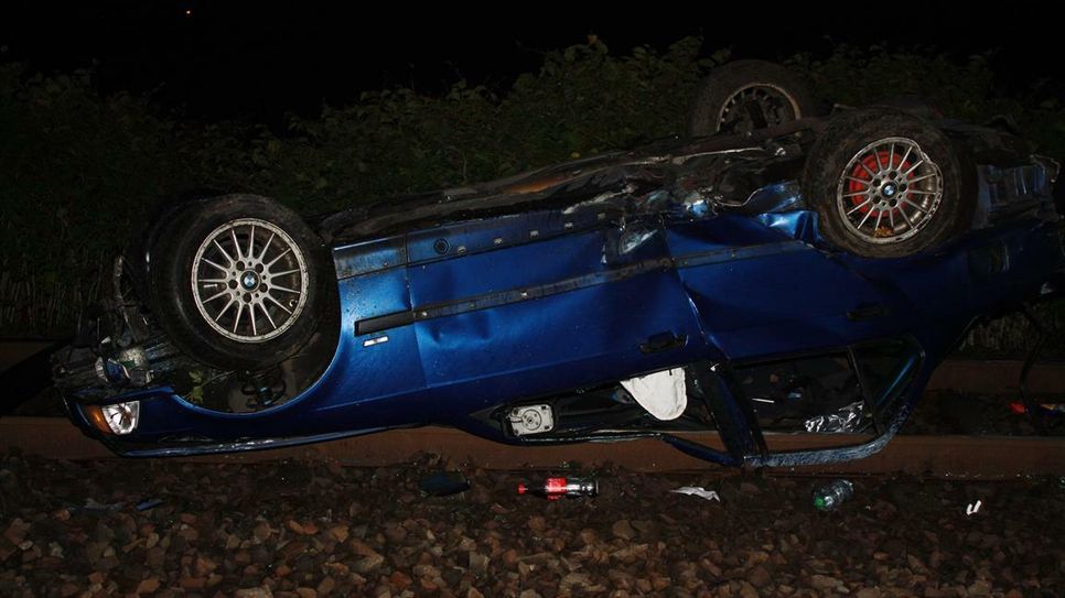 Der Zug wurde dabei beschädigt. Die Fahrgäste im Zug blieben unverletzt. Der Bahnverkehr musste bis etwa 7.40 Uhr unterbrochen werden. Die B9 war bis 7.30 Uhr voll gesperrt. Die Polizei geht davon aus, dass der junge Mann deutlich zu schnell unterwegs war und deshalb die Kontrolle über sein Fahrzeug verloren hat.