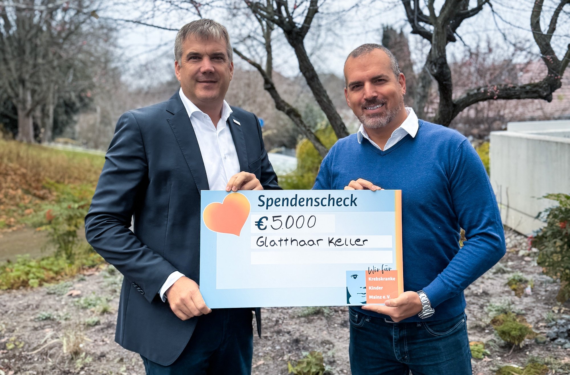 Bei der symbolischen Scheckübergabe durch Michael Gruben, Geschäftsführer von Glatthaar Keller, bedankte sich Kai Leimig für die enge Verbundenheit des Unternehmens mit dem Elternverein Krebskranke Kinder Mainz e.V. und dessen Zielen. Mit dem Geld werden Familien unterstützt, die während ihrer Auszeit in der Erholungsanlage den Tier- und Erlebnispark in Bell im Hunsrück besuchen möchten – die Tickets dafür sind durch die Spende finanziert. Außerdem bezahlt der Förderverein damit auch die Kosten einer heilpädagogischen Reittherapie für Patienten und deren Geschwister in einem nahegelegenen Pferdehof.