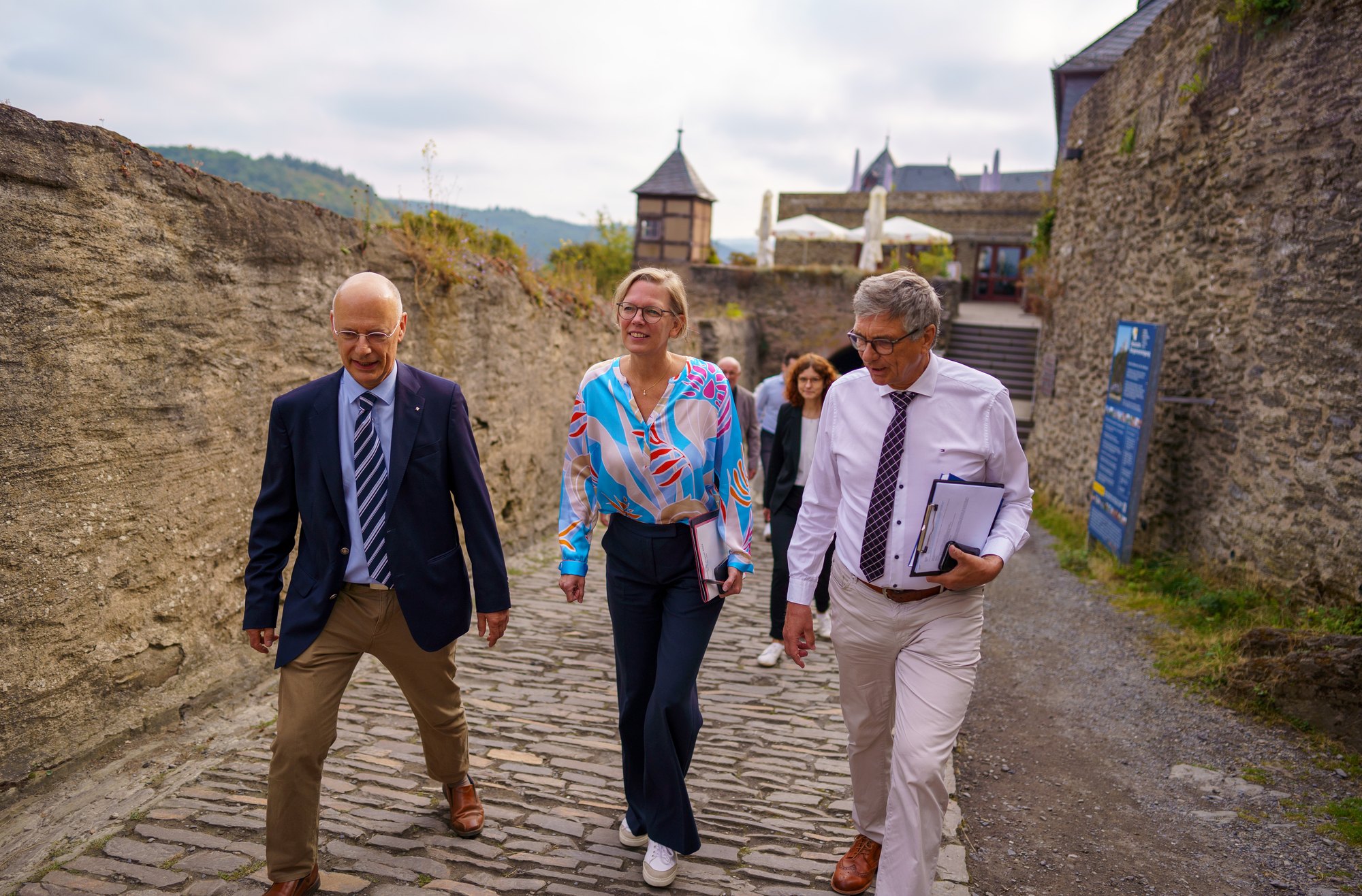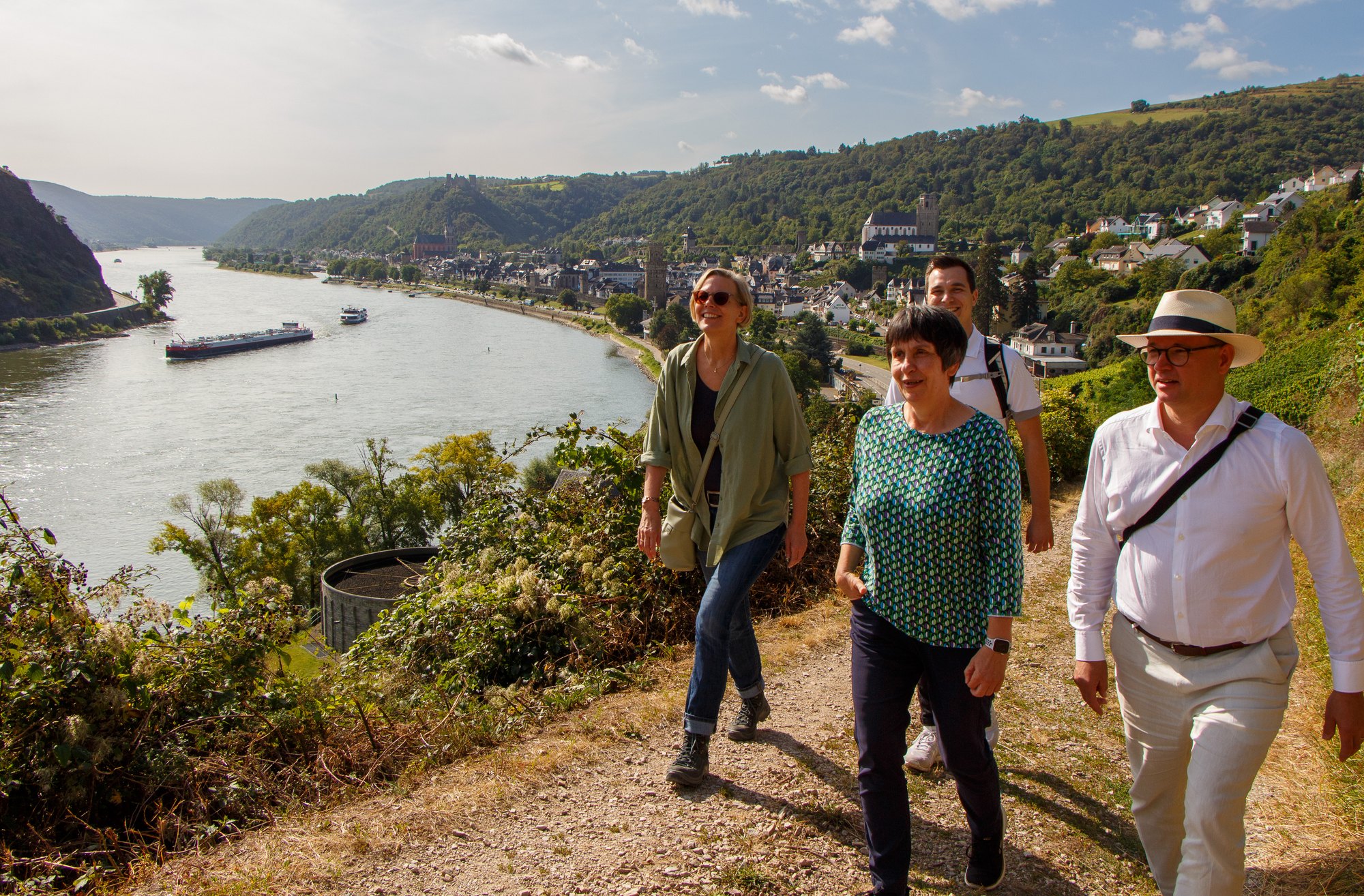 Begleitet wurde Staatssekretärin Schneider bei ihrer Reise von Expertinnen und Experten für das kulturelle Erbe aus verschiedenen Ressorts der Landesregierung und bei der Generaldirektion Kulturelles Erbe (GDKE). Ein intensiver Austausch mit dem Vorsteher des Zweckverbandes Welterbe Oberes Mittelrheintal, Herrn Landrat Volker Boch, der BUGA GmbH und vom Romantischer Rhein Tourismus rundeten die Welterbereise ab.