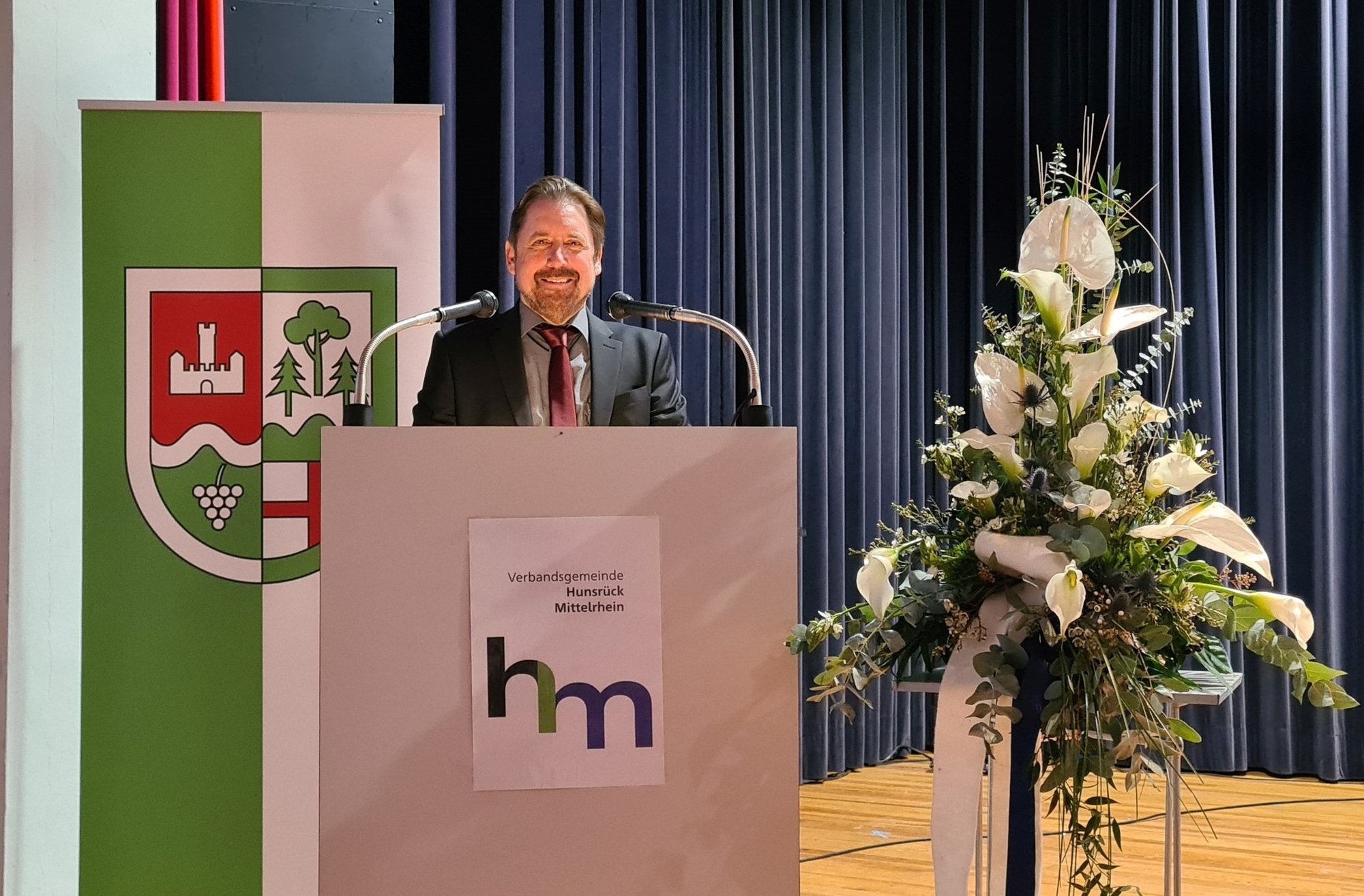 Bürgermeister Peter Unkel skizzierte in seiner Neujahrsansprache im Rahmen einer Fotorevue die wichtigsten Ereignisse und Entwicklungen des vergangenen Jahres in der jungen Verbandsgemeinde Hunsrück-Mittelrhein. "Unsere Heimatregion "ganz vorne im Hunsrück" und im "Welterbe Oberes Mittelrheintal" ist zweifellos weiter zusammengewachsen. Die Zusammenarbeit in den Gremien der Verbandsgemeinde und mit den Stadt- und Ortsbürgermeistern ist nach wie vor von einem guten Geist geprägt. Es gilt nun in diesen schwierigen Zeiten weiterhin, das Erreichte zu sichern und zukunftsfest auszubauen", betonte Bürgermeister Unkel. Zum Abschluss seiner Neujahrsansprache bedankte er sich bei allen, die sich für unser kommunales Gemeinwesen einsetzen.