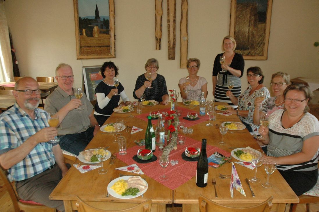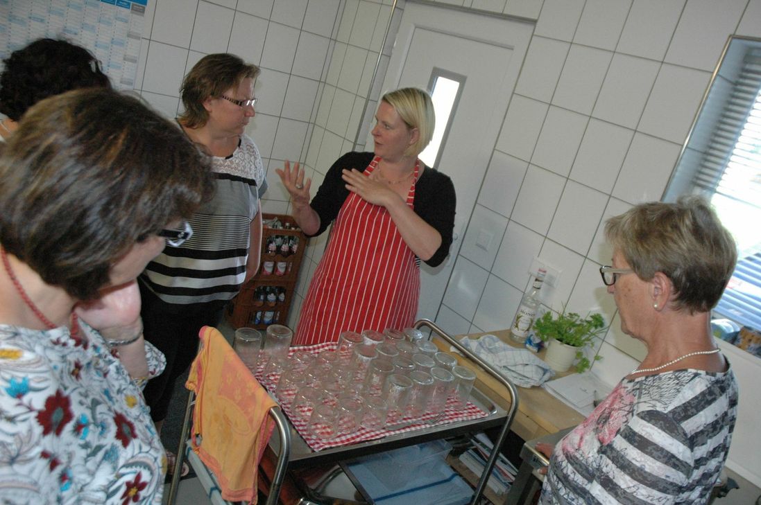 Schon die Jury der beliebten SWR-Reihe hatte die Laubacherin mit einem Schmankerl aus der Erdbeerküche überzeugt: Hunsrücker Weidegockel mit selbst gemachten Bandnudeln und Erdbeer-Curry-Sauce brachten am Ende den Sieg. Und die ausgefallene Rezeptidee krönte auch den halbtägigen Workshop am vergangenen Freitag. Und wer sich zuvor noch fragte: Erdbeeren und Gockel? Passt das überhaupt zusammen? Der wurde schon nach dem ersten Bissen eines besseren belehrt. »Sehr lecker!«, so das einhellige Urteil der acht Workshop-Teilnehmer. Vor dem genussvollen Abschluss des Vormittags war allerdings auch ein bisschen Arbeit angesagt: Nach einem Erdbeer-Smoothie zur Begrüßung machten sich die acht Damen und Herren unter Anleitung von Erdbeer-Expertin Tanja Müller sogleich an die Ernte. Die Ausbeute wurde anschließend sogleich verarbeitet - und zwar zu einer spritzigen Erdbeer-Prossecco-Marmelade und einem herzhaft-exotischen Erdbeer-Balsamico-Senf-Chutney. Kompetent eingewiesen von der »SWR-Landfrau« packten die acht WochenSpiegel-Leserinnen und -Leser emsig mit an. Abwechselnd wurde geputzt, geschnitten, gerührt, gekocht, etikettiert und abgefüllt. Bei sommerlichen Temperaturen zuweilen eine schweißtreibende Angelegenheit - doch zur Belohnung gab‘s für jeden Teilnehmer natürlich auch eine große Portion der selbstgemachten Erdbeer-Spezialitäten zum Mitnehmen. Und das Fazit? »Wie ein Tag Urlaub«, resümiert Teilnehmerin Regina Justus aus Simmern. Und auch Ernst-Ludwig Klein aus Kirchberg, selbst begeisterter Hobbykoch, freute sich über neue Inspirationen und Anregungen. »Man merkt, mit wieviel Herzblut Frau Müller bei der Sache ist«, lobte auch unsere Leserin Christine Servatius aus Boppard. Der Start der nächsten Staffel der SWR-Reihe »Lecker aufs Land« steht übrigens schon kurz bevor: Am nächsten Mittwoch, 3. August, ist die erste Folge um 20.15 Uhr im SWR-Fernsehen zu sehen. Die Rezepte des Workshops zum Nachkochen finden Sie zum Download im Infokasten auf der linken Seite. Das "Lecker aufs Land"-Siegerrezept finden sie hier.