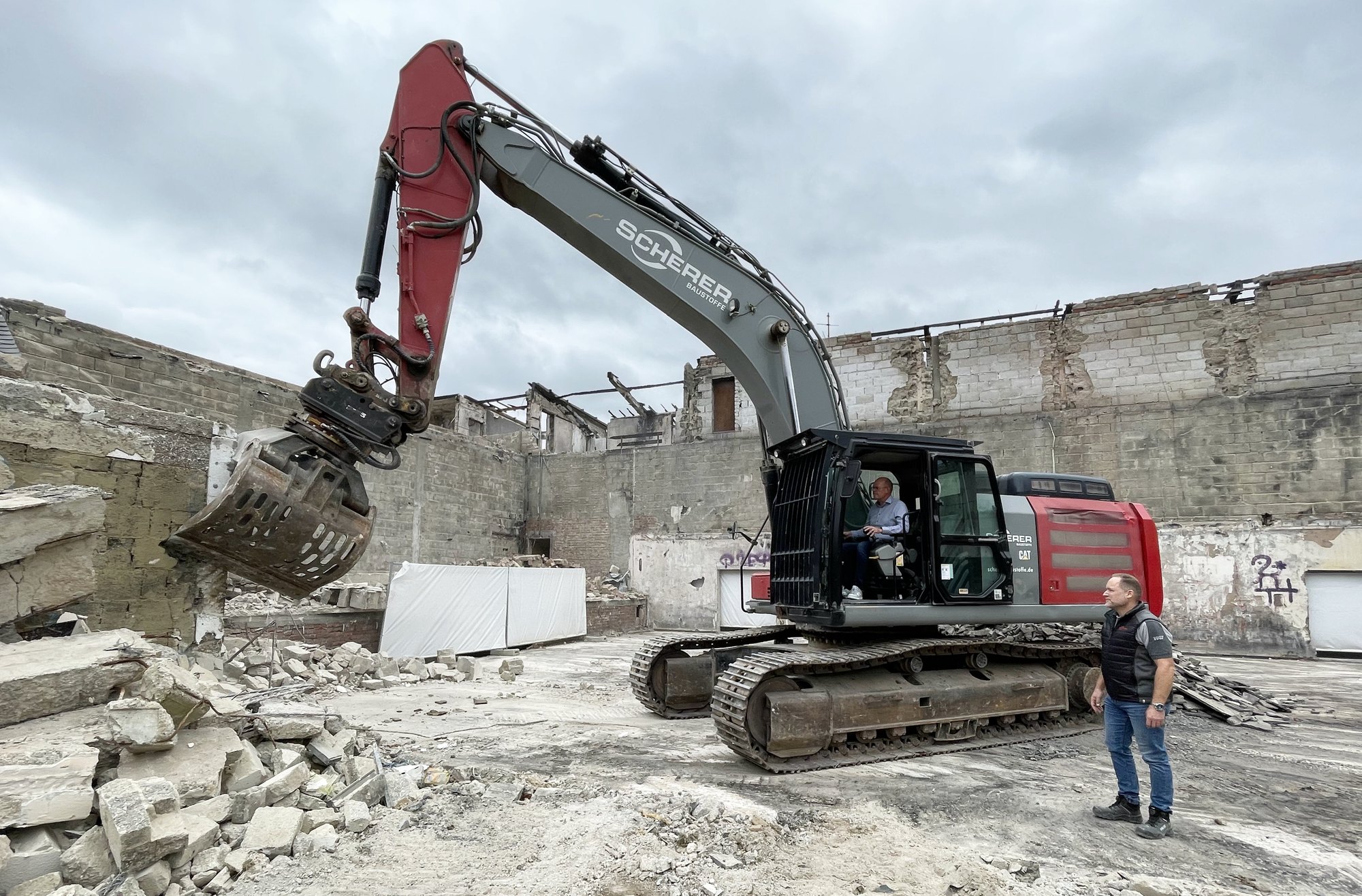 Wann danach mit dem Bau der neuen Stadthalle begonnen werden kann, ist noch unklar. "Die Baugenehmigung wurde erteilt, allerdings warten wir noch auf die Zusage von Förderungen. Erst dann können wir die Gewerke ausschreiben. Den Antrag haben wir bereits im Oktober gestellt", sagt Keimer beim Pressetermin vor Ort. Dabei ließ er es sich nicht nehmen, als symbolischen Start für die letzte Abrissphase selbst in den Bagger zu steigen.