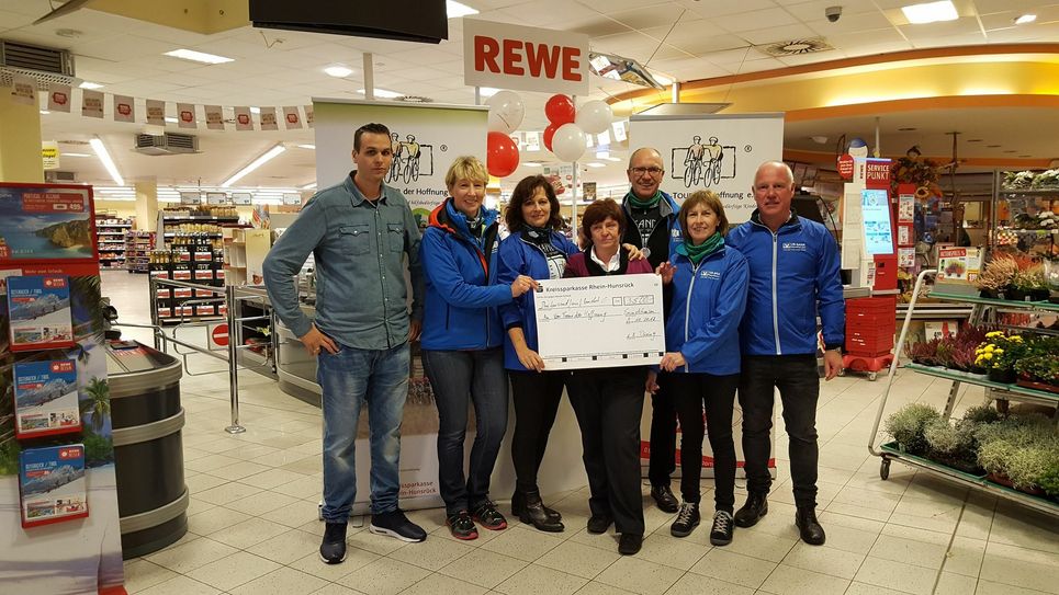 Unermüdlich, engagiert, anderen helfen, immer im Dienst der guten Sache und mit noch viel mehr lobenden Worten lässt sich der Einsatz von Barbara Döring und Sabine Eckes umschreiben. Döring war für die Kinder unterwegs, die nicht auf der Sonnenseite des Lebens stehen. Erneut hat sie, unterstütz von Marktleiter Daniel Schmitz, Sabine Eckes und einem Team aus Mitarbeiterinnen und Mitarbeitern eine Tombola mit über 3 000 Preisen zusammengestellt um krebskranke und hilfsbedürftige Kinder zu unterstützen. "Möglich ist das nur" so Barbara Döring, "weil viele Zulieferer von REWE Hundertmark sich solidarisch erklärten und diese Aktion mit unterstützen." Die Vor-Tour der Hoffnung, vertreten durch Anja Wendling, Rita und Rainer Friedrich sowie Heidi und Oswald Haese, möchte sich ganz herzlich bei Barbara Döring, Sabine Eckes, Daniel Schmitz und der Belegschaft von Rewe Hundertmark bedanken, die mit einer fantastischen Teamleistung dieses Ergebnis ermöglicht haben.
