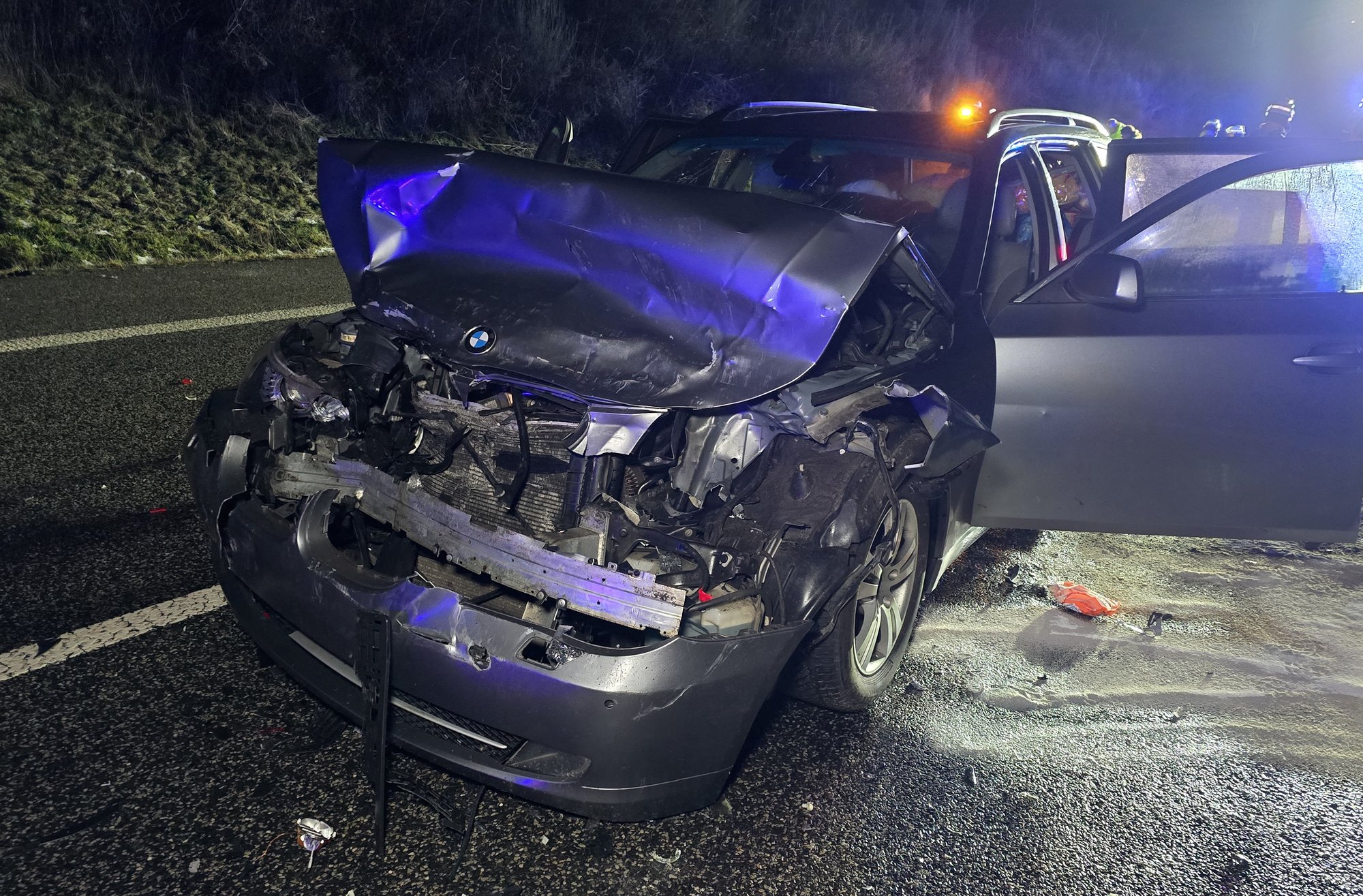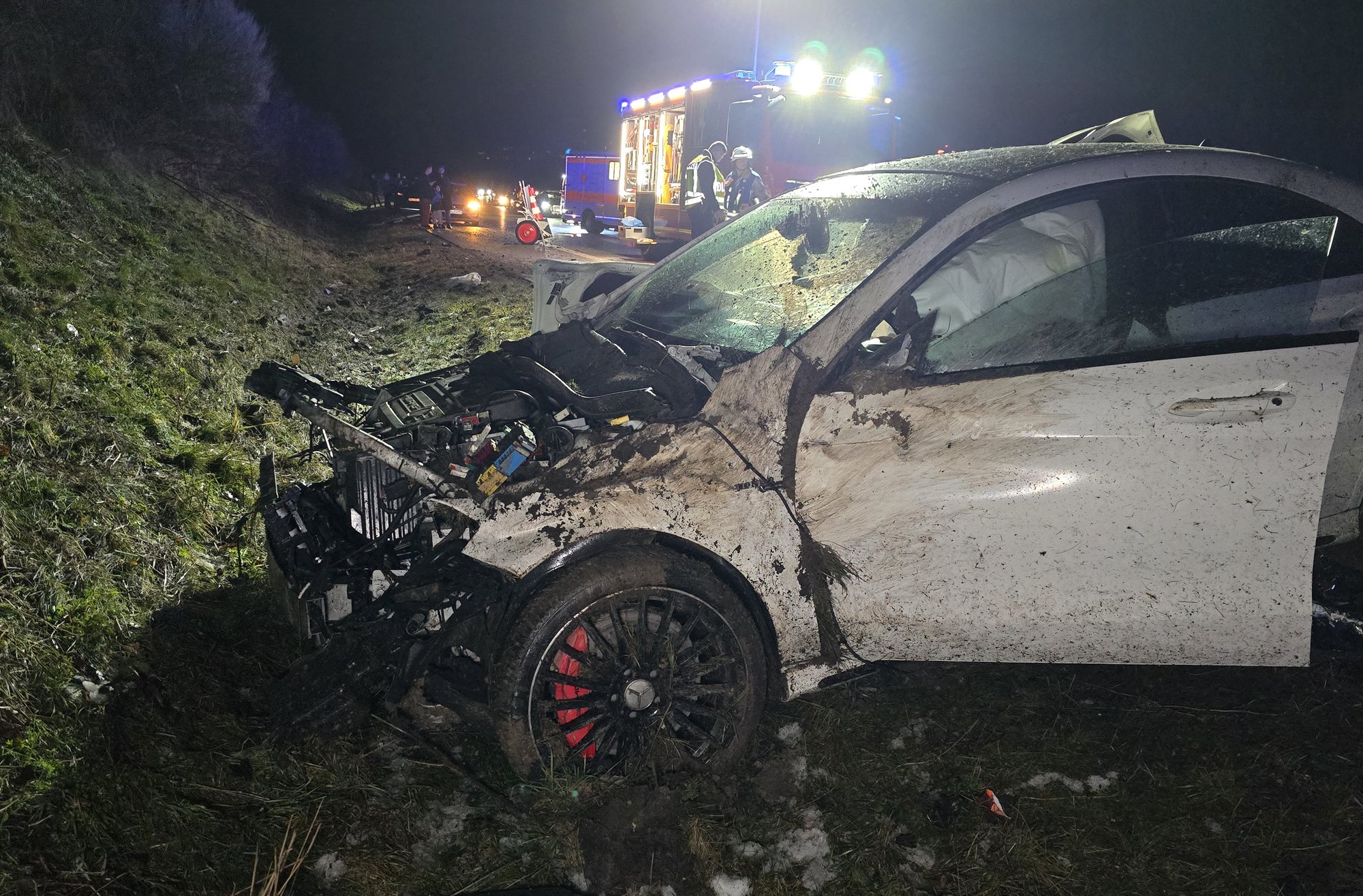 Aus bislang ungeklärter Ursache kam ein Fahrzeug alleinbeteiligt von der Fahrbahn ab und landete im Straßengraben. Da aufgrund des Unfalls Teile des PKW auf der Fahrbahn lagen, bremste nur wenig später ein weiteres Fahrzeug ab. Ein nachfolgender PKW führ auf dieses Fahrzeug auf. Alle drei Fahrzeuge wurden erheblich beschädigt. Insgesamt fünf Personen wurden leicht verletzt.