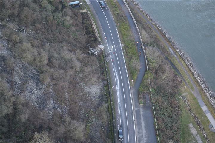 Bei einem Hangrutsch an der B 9 zwischen St. Goar und St. Goar - An der Loreley lösten sich am heutigen Freitag mehrere Gesteinsbrocken mit einem Durchmesser von bis zu einem Meter.
