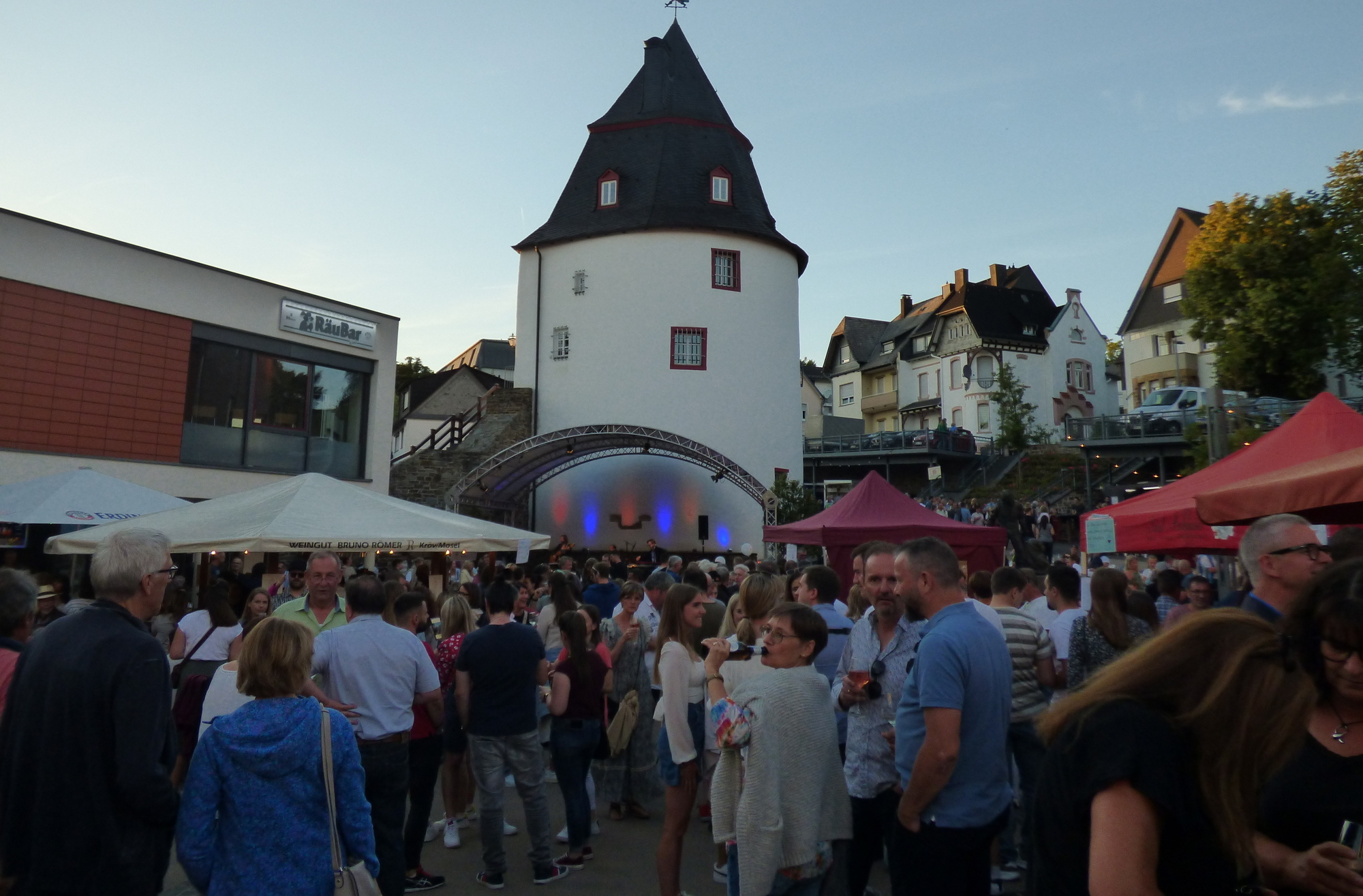 Der Angebotsschwerpunkt liegt auch diesmal auf Wein aus den Anbaugebieten Rhein, Nahe und Mosel. Kulinarisch erwarten die Besucherinnen und Besucher regionale Spezialitäten und Snacks. Ab 19 Uhr unterhält die Gäste die »Big Band Unlimited« unter der Leitung von Ralph »Mosch« Himmler mit »swing-vollen« Melodien auf dem Schinderhannesplatz. Für den Gesang zeichnen Christina Wickert und Stefan Adamus verantwortlich.