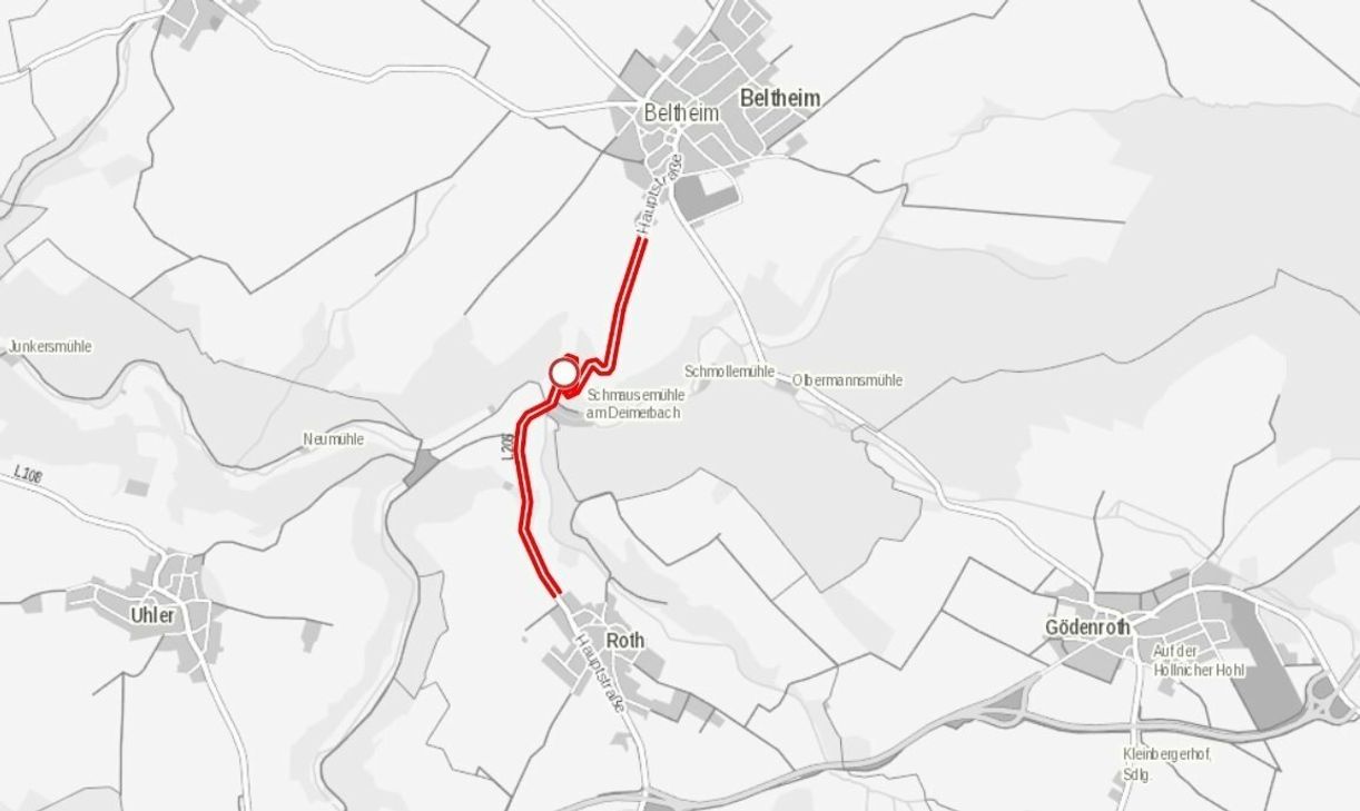 Die ausgeschilderte Umleitung von Gödenroth nach Beltheim führt über die Kreisstraße (K) 35 und die Bundesstraße (B) 327 sowie umgekehrt. Der Landesbetrieb Mobilität Bad Kreuznach bittet die Verkehrsteilnehmer um Verständnis für die zu erwartenden Beeinträchtigungen.