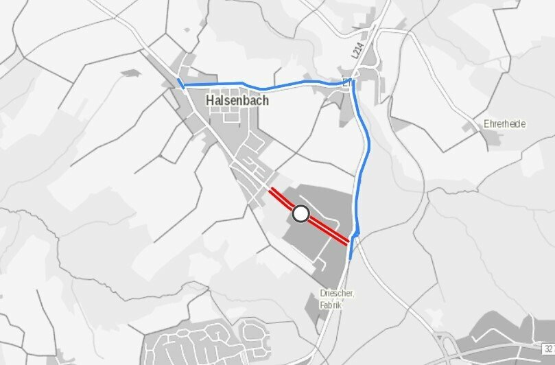 Die Umleitung erfolgt von Halsenbach nach Ehr, weiter auf der Landesstraße (L) 214 Richtung Gewerbegebiet und Emmelshausen und umgekehrt. Es wird darauf hingewiesen, dass es zu Änderungen bei den Busfahrtzeiten kommen wird. Hierzu wird eine gesonderte Information des Verkehrsunternehmens in der örtlichen Tagespresse sowie auf deren Homepage erfolgen.