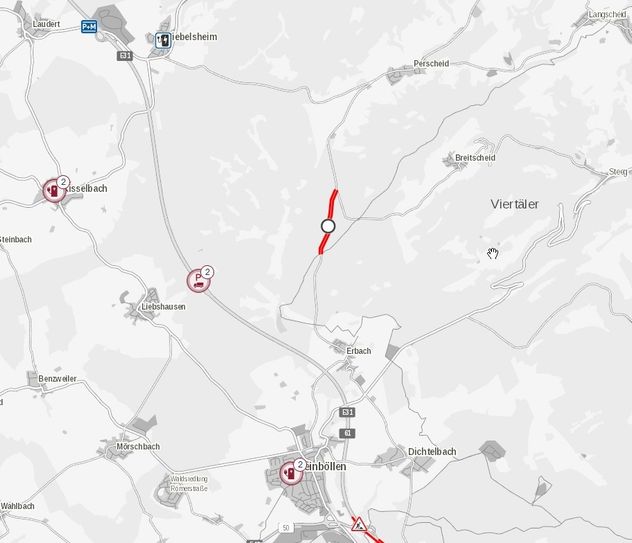 Die Umleitung führt über die Kreisstraße (K) 86 Perscheid, K 88 Wiebelsheim, Landesstraße (L) 220 Kisselbach, L 214 Rheinböllen und die K 44 bis Erbach und umgekehrt. Der LBM Bad Kreuznach bittet Verkehrsteilnehmer und Anlieger um besondere Aufmerksamkeit und Verständnis für die zu erwartenden Beeinträchtigungen.