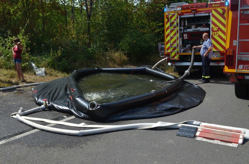 Im Einsatz sind auch zahlreiche Großtank-Einsatzfahrzeuge der umliegenden Feuerwehren. „Zudem haben wir auch zwei Fahrzeuge aus dem Kreis Bad Kreuznach angefordert. So sind zwei Großtanks mit 3 000 Liter Löschwasser sowie fünf mit 5 000 Liter im Einsatz“, sagt Kreisfeuerwehrinspekteur Stefan Bohnenberger. Dazu kommen noch zwei Tanks mit einem Fassungsvermögen von 8 000 bzw. 9 000 Liter.