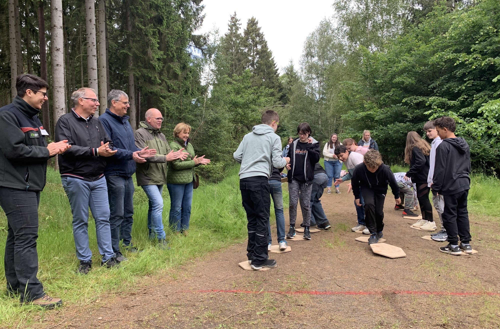 Nach den Parcoursdurchläufen wurden die Schülerinnen und Schüler mit Würstchen und Getränken versorgt. Auch wenn es bei den Wald-Jugendspielen vorrangig um die Interessensweckung und um die Bildung um das Thema Wald und Umwelt geht, sind die Spiele doch als Wettbewerb ausgelegt. Eine Siegerehrung findet zu einem späteren Zeitpunkt in den erfolgreichen Schulen statt. Die Schüler*innen der drei ersten Klassen können sich über Preisgelder und Sachpreise freuen. Die Gewinnerklasse erhält außerdem eine Plakette der Schutzgemeinschaft Deutscher Wald und einen Jahres-Eintrittsgutschein für den Tierpark Rheinböllen.