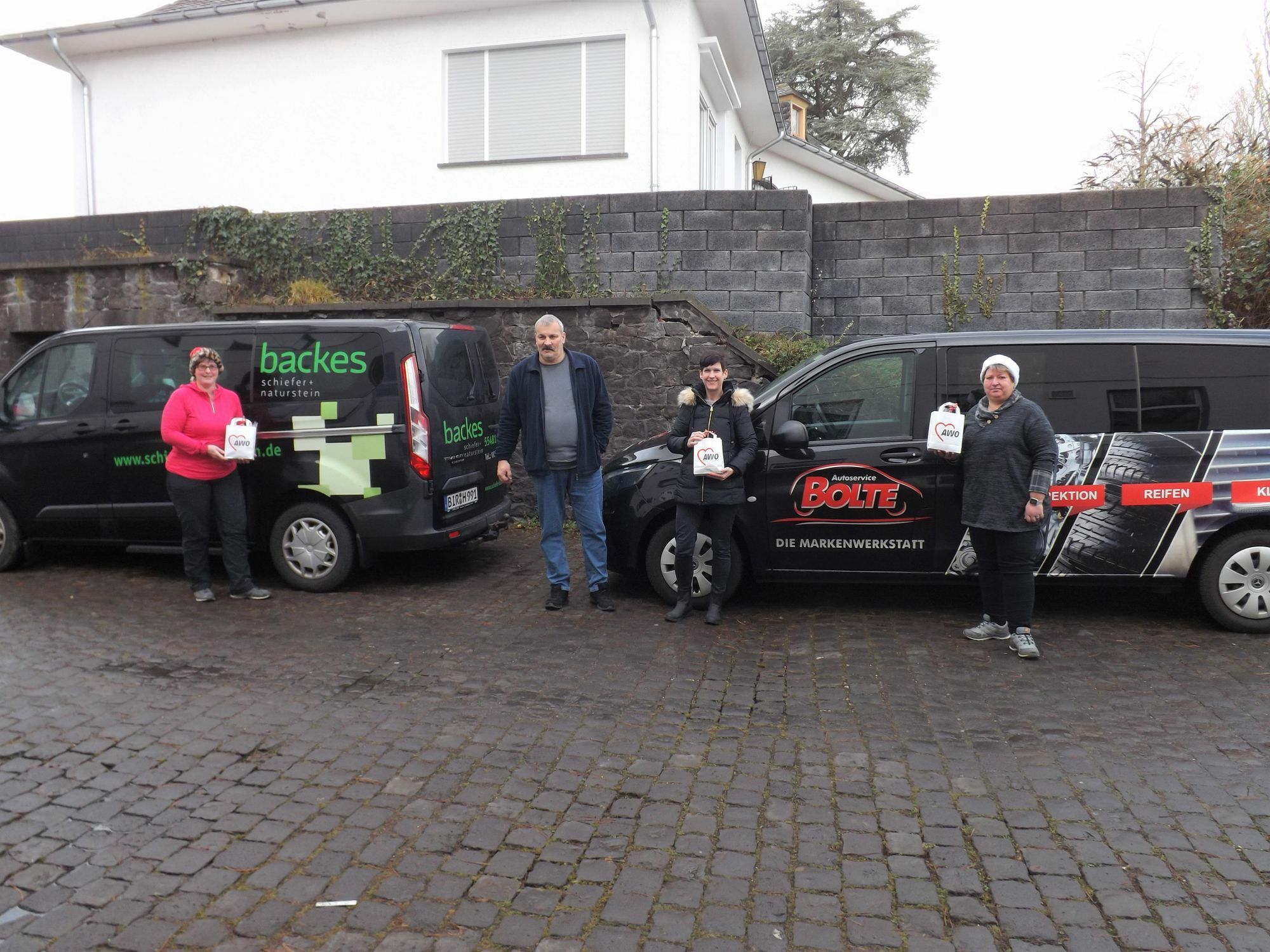 Ebenfalls machten sich die AWO-Weihnachtsengel (Britta Linn, Sven Linn, Gudrun Ströher, Gerhard Weyand, Silvia Weyand) die Mühe und packten rund 100 Tüten mit Plätzchen und diversen Kleinigkeiten für die Senioren im Ort. Auch die Ahrtalschule und die Grundschule in Dernau wurden mit Präsenten bedacht.
