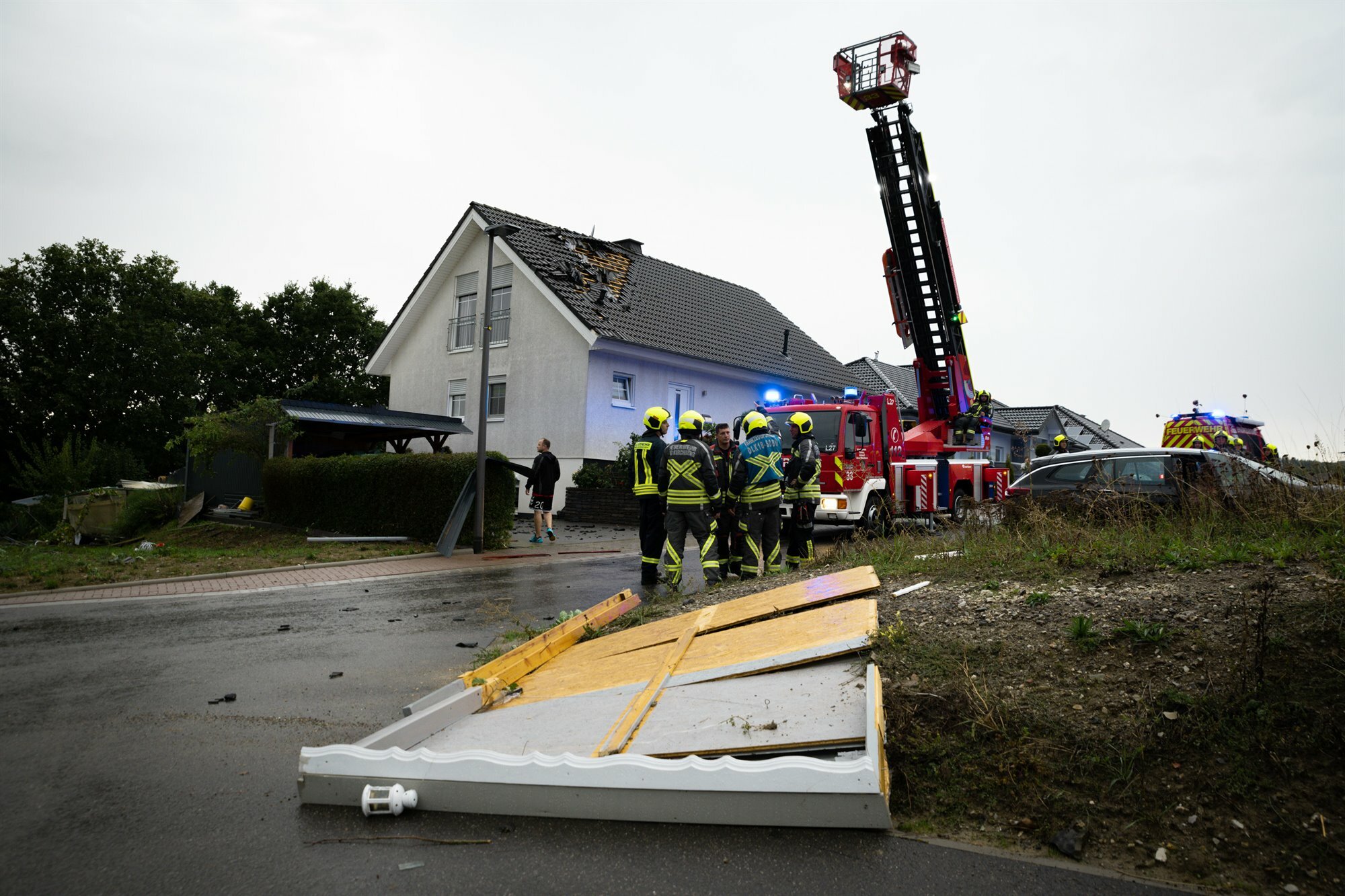 Es ging alles ganz schnell. Am Mittwochabend, gegen 18 Uhr, fegte während eines Gewitters eine Windhose von Westen heran und beschädigte Dächer und ein Gartenhaus. Nach Berichten vor Ort dauert das Ereignis weniger als eine Minute.