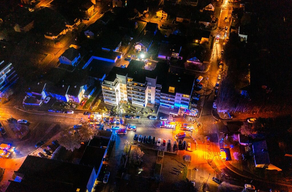 16 Personen wurden aus dem Wohnhaus evakuiert, wobei die Feuerwehr auch Drehleitern einsetzte. Ein Polizist sowie zwei Anwohner wurden vorsorglich ins Krankenhaus gebracht. Direkt betroffen sind drei Wohnungen, wie Einsatzleiter Andreas Roth mitteilte. Neben der Brandwohnung konnten auch zwei weitere, der insgesamt 16 Wohnungen nicht mehr durch die Einsatzkräfte freigegeben werden.