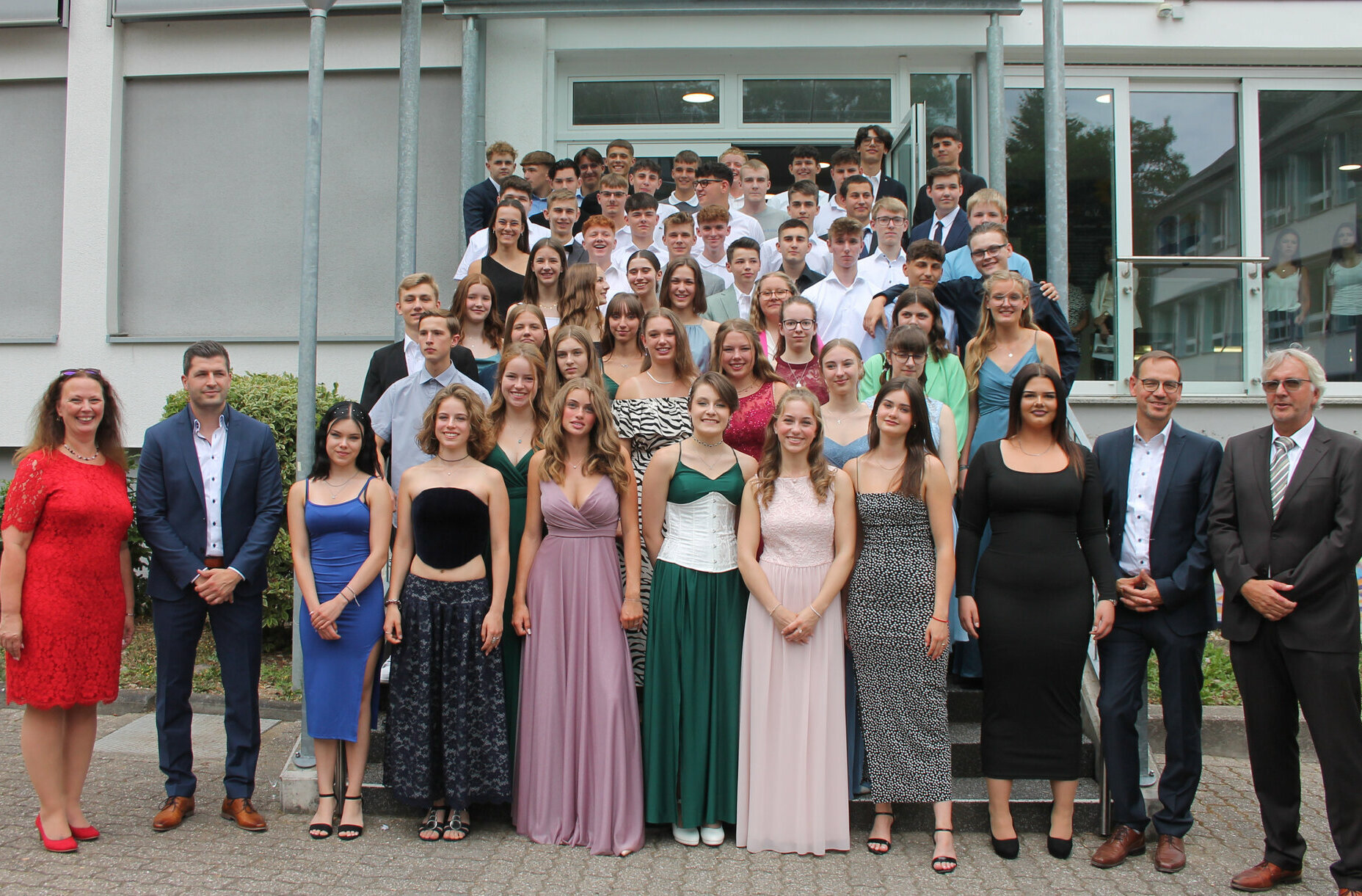 Markus Fesser wandte sich in einer Rede an seine Klasse, dankte für viele positive Erlebnisse vor allem im Rahmen der Klassenfahrt und entsandte seine Schüler mit guten Wünschen für die Zukunft. "Schule ist kein Warenhaus, wo man sich rausnimmt, was man braucht. Schule bietet Bildung und übt Werte ein", begegnete Fesser dem von einer Supermarktkette entliehenen Motto "Sechs Jahre hin, Abschluss drin". Für Überraschung sorgte Benedikt Lauer, der mit seinen Schülern die erste iPad-Klasse eingeführt hatte. Er führte Schülern, Eltern und Lehrern den Unterschied von einer unpersönlichen Rede á la ChatGPT und persönlichen Abschiedsworten vor Augen: "Ich hätte mir die Abschiedsrede auch schreiben lassen können, aber das wird euch und der Zeit, die wir miteinander hatten, nicht gerecht", so Lauer. Die Elternsprecher beider Klassen, Heiko Breitbarth und Carmen van Veen, sowie deren Stellvertreter, Eva Krautkrämer und Manja Andres, nutzen ihrerseits die Veranstaltung für Rückblick und Dank. Teils humoristisch, teils ernst blickten Kevin Pohl und Johannes Boos für die Klasse 10a und Helen Röhrig und Sina Wilhelm für die 10b als Klassensprecher zurück auf ihre Zeit am Marienberg. Als Zeichen ihrer Lösung von der Schule ließen die Zehner zum Ende Luftballons in den Himmel steigen