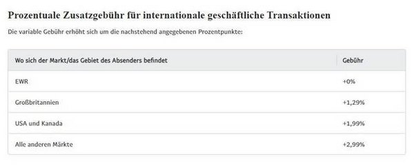 Zu den bisherigen Gebühren kommen auf geschäftliche Transaktionen nun nochmal zusätzliche Kosten hinzu. Das betrifft Großbritannien, USA, Kanada und alle weiteren Länder außerhalb des Europäischen Wirtschaftsraums (EWR).
