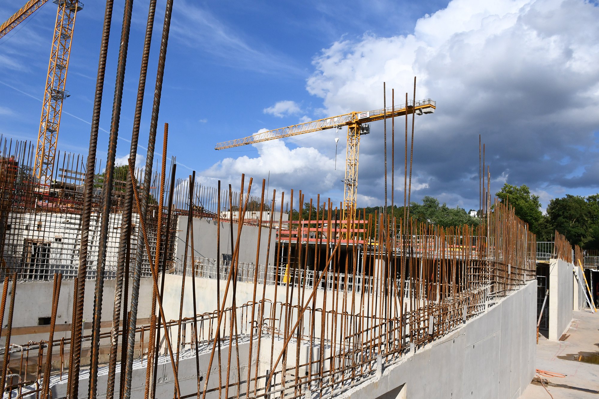 Insgesamt wurden bisher 10.000 Kubikmeter Beton und 2000 Tonnen Stahl verbaut. Für die folgenden, demnächst anstehenden Gewerke wurden bereits Aufträge erteilt: Zimmerei und Holzbau, Fenster und Sonnenschutz sowie Gerüstbau. Derzeit laufen unter anderem Ausschreibungen für die Installation der Heizungs-, Lüftungs- und Sanitäranlagen, die Dachabdichtung und die Gebäudeautomation.
