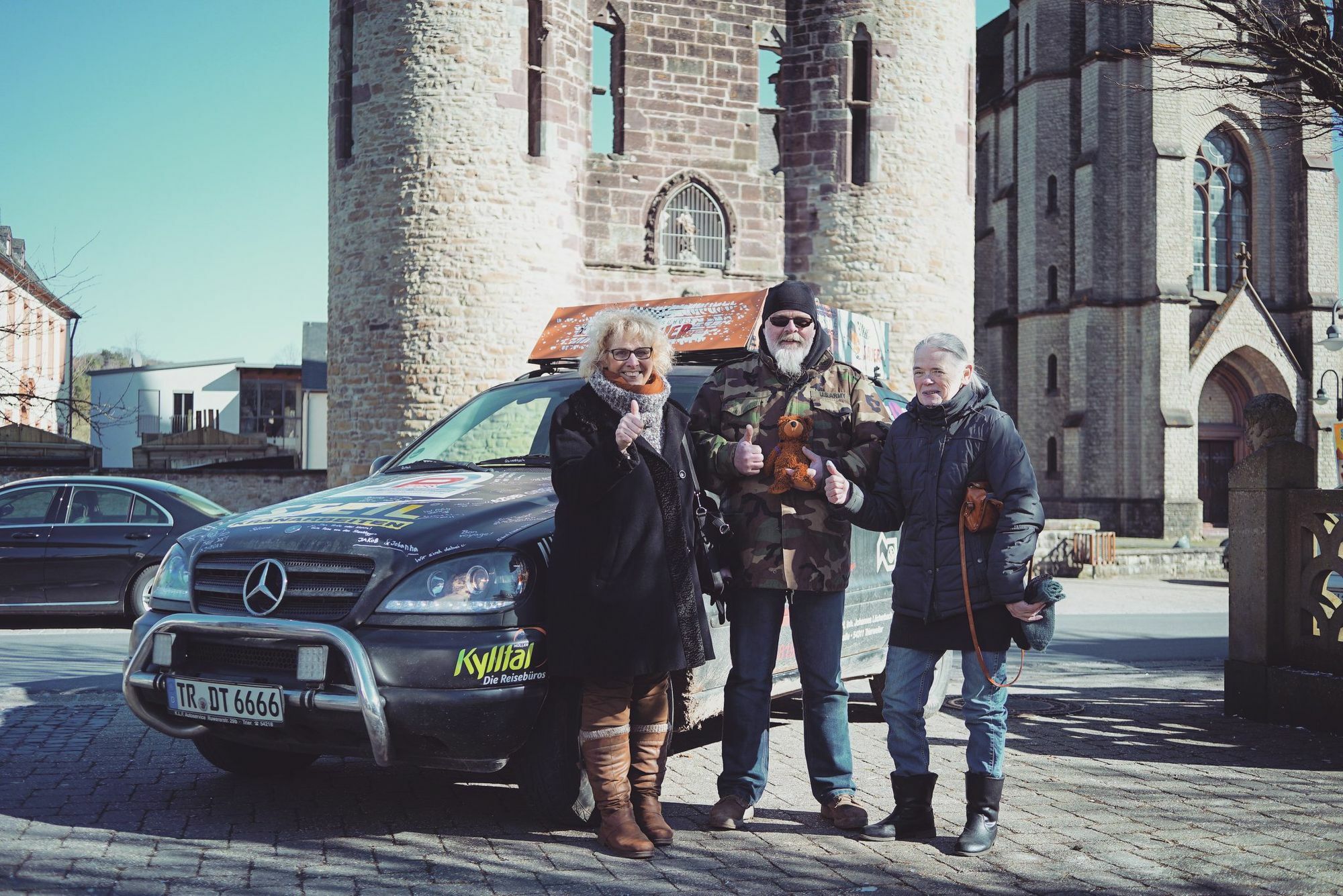 März: In Föhren startet eine Charity-Rallye und Spendenaktion. Das Team Desert Taxi ist mit dabei. Ziel 2018 ist Banjul in Gambia, wo das Fahrzeug versteigert und mit dem Erlös soziale Projekte unterstützt werden.