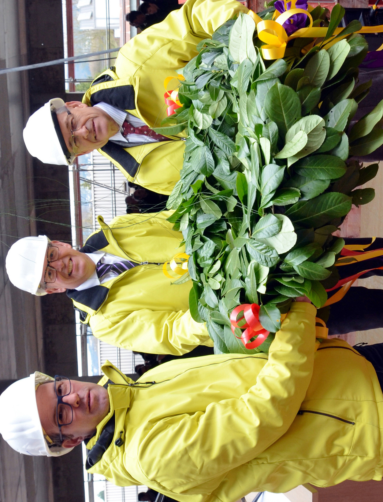 März: Richtfest für den Neubau des Berufsbildungs- und Technologiezentrums (BTZ) der Hwk in der Loebstraße im Bild: BTZ-Leiter Thomas Sandner, Hwk-Hauptgeschäftsführer Axel Bettendorf und Präsident Rudi Müller.