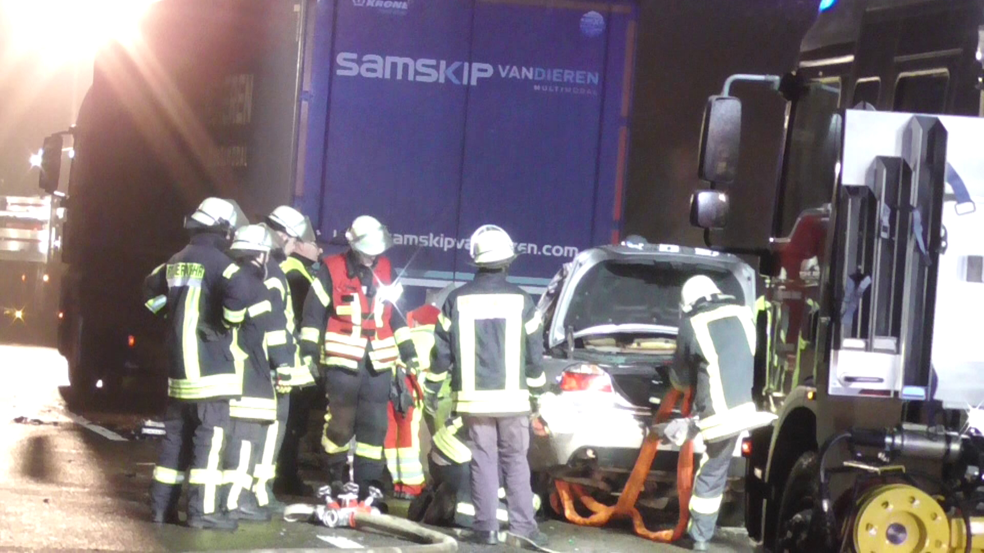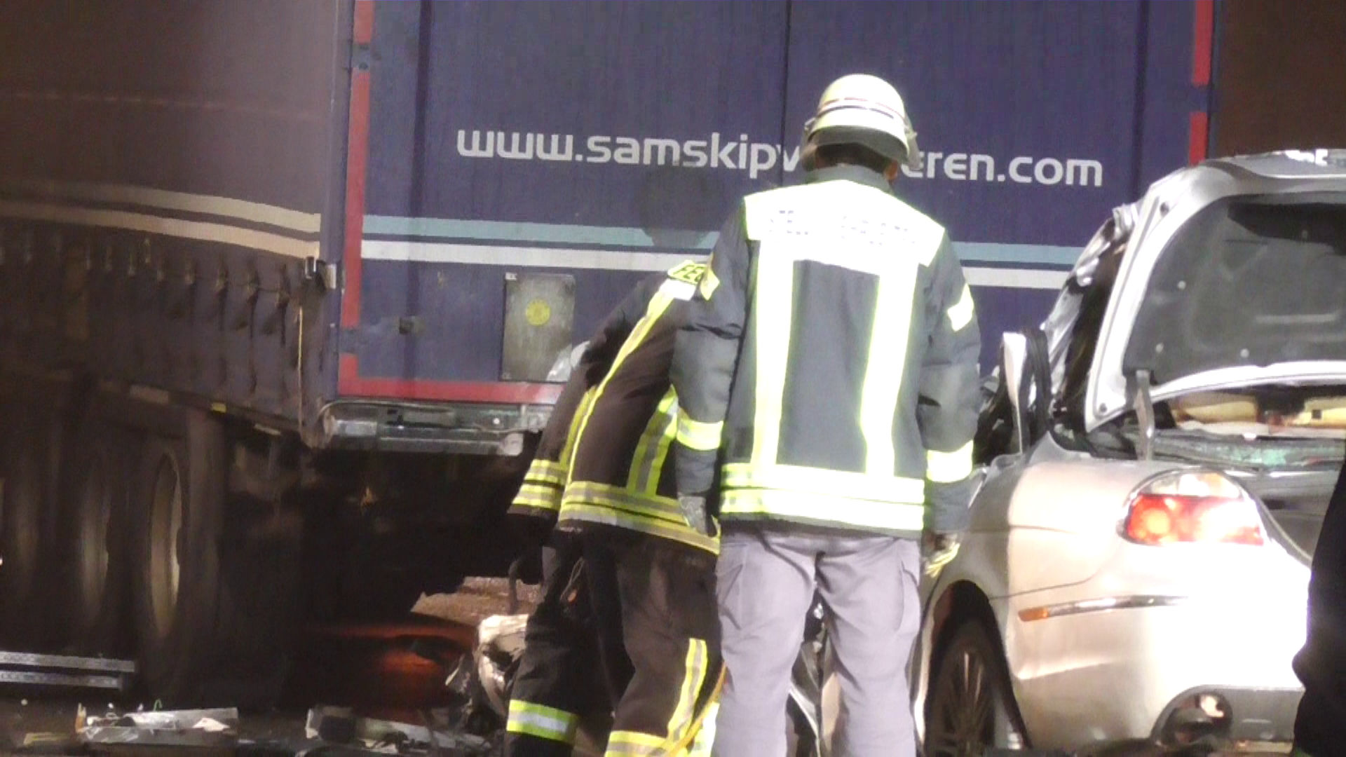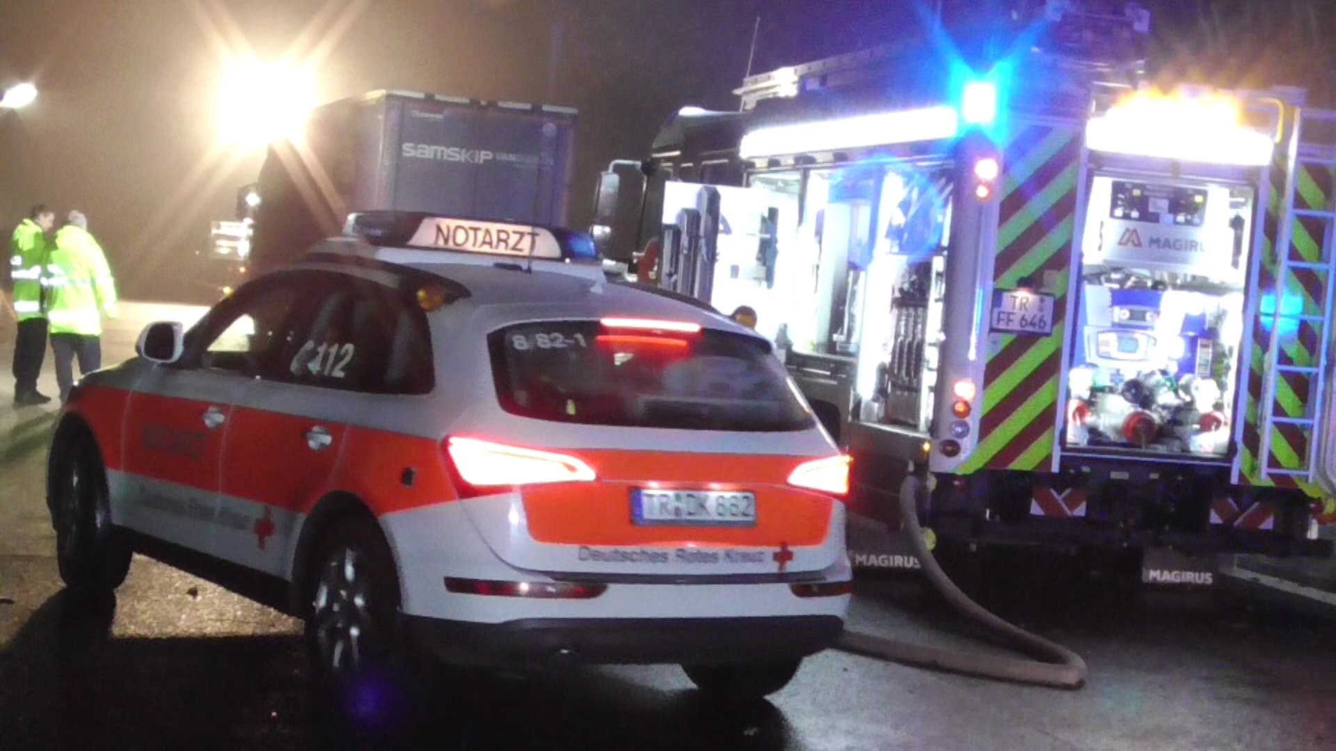 Nach derzeitigem Stand der Ermittlungen hatte ein Sattelzug kurz vor dem Unfall einen Defekt. Der Fahrer lenkte ihn auf den Standstreifen. Er konnte die Fahrt wenig später fortsetzen und scherte nach kurzer Anlaufstrecke und mit geringer Geschwindigkeit auf die rechte Fahrbahn ein. Hier kam es dann zum folgenschweren Zusammenprall mit dem nachfolgenden Auto. Für die Unfallaufnahme und Bergung der Fahrzeuge wurde die A 1 zwischen den beiden Anschlussstellen vollgesperrt. Die Trierer Staatsanwaltschaft hat einen Gutachter zur Klärung des Unfalls beauftragt. Genauere Angaben zu den technischen Zuständen der Fahrzeuge und sonstigen Unfallursachen sind erst nach Vorlage des Unfallgutachtens zu erwarten. Im Einsatz waren neben dem Rettungsdienst die Feuerwehren Schweich und Issel, die Autobahnmeisterei Schweich sowie mehrere Streifen der Polizeiinspektionen Trier und Schweich und der Polizeiautobahnstation Schweich. Fotos/Video: Agentur Siko