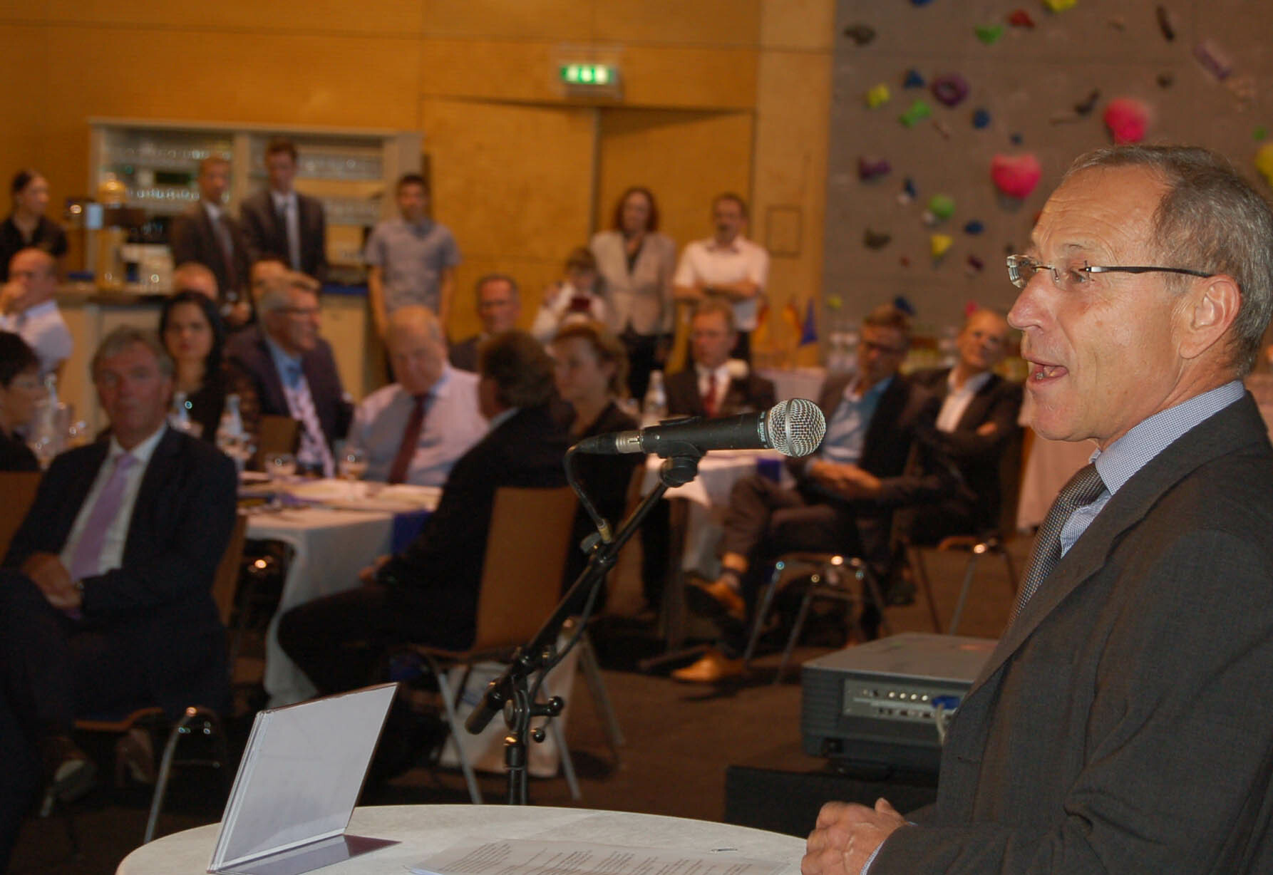 Welches Netzwerk die Akademie seit ihrer Gründung am 20. August 1990 gesponnen hat, wurde bei der Anzahl und der Auswahl der Gäste in der Arena Trier deutlich: 150 Macher aus dem Sportbereich waren gekommen - und das sogar aus Schweden und Polen. "Sport bewegt Europa und die Menschen", betonte der seit 16 Jahren amtierende Akademie-Vorsitzende Georg Bernarding (im Bild) in seiner Begrüßungsrede - und erinnerte auch an jenen, auf dessen Idee die Akademie zurück zu führen ist: Peter Schössler, der frühere Landessportbund-Hauptgeschäftsführer und langjährige Lotto-Rheinland-Pfalz-Chef. Aus- und Fortbildungen werden von der Akademie organisiert, Seminare und Tagungen im Sinne der Völkerverständigung und im engen Verbund gerade mit den unmittelbaren europäischen Nachbarn in Lothringen, der Wallonie und Luxemburg durchgeführt Grundlegend ist der Fair-Play-Gedanke.