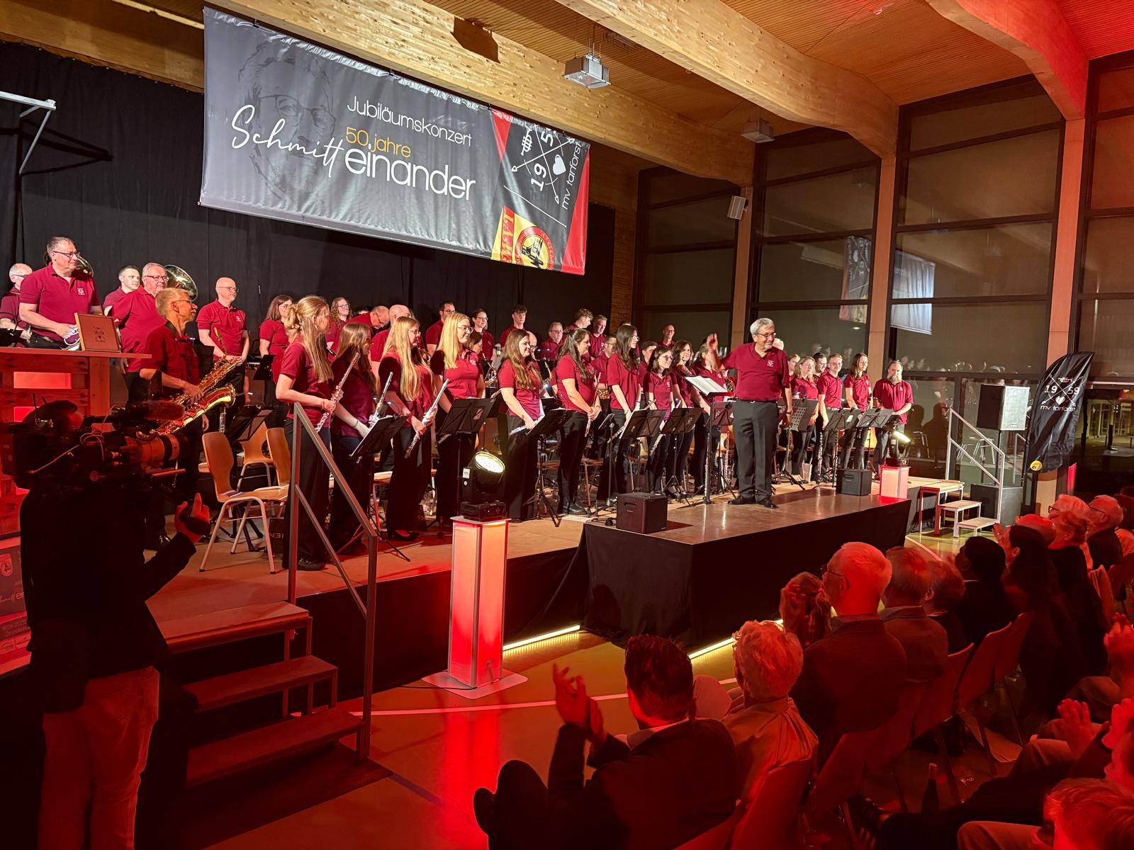 Vor einem ausverkauften Saal, darunter Ehrengast Oberbürgermeister Wolfram Leibe, präsentierten die 57 aktiven Musiker ein Programm, das sowohl musikalisch als auch erzählerisch überzeugte. Stücke wie „My Way“, „The Rock“ oder „Jesus Christ Superstar“ wurden mit persönlichen Geschichten aus Schmitts Leben verwoben. Besonders aufmerksam reagierte das Publikum auf die Anekdote vom „Milchbock“, auf dem sich einst die Tarforster Mädchen versammelten – und wo Franjo seine spätere Frau zum ersten Mal sah.