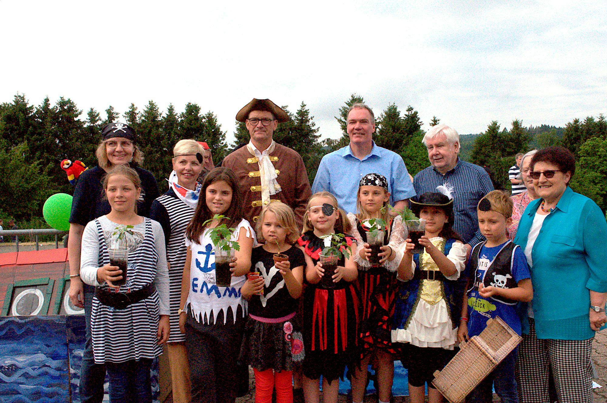 Über der IGS in Hermeskeil weht eine schwarze Piratenflagge, aus den Lautsprechern ertönt die Titelmusik aus dem Film "Fluch der Karibik". Schwarz gekleidete Seeräuber, viele mit Augenklappe, spielen Fußball, jagen Seifenblasen oder laufen ganz in Piratenmanier mit ihren Degen, Säbeln und Dolchen hin und her, bereit für jeden Kampf. Unter dem Motto "Mit Piraten, Schätzen und Cool-Tour" waren 600 Kinder in den vergangenen zwei Wochen im Kreis unterwegs. Gemeinsam mit ihren 80 Betreuern haben die Kinder zwischen acht und zwölf Jahren viele Abenteuer erlebt. Auf dem Programm standen verschiedene Freibadbesuche, gemeinsame Wanderungen, unterhaltsame Spiele und gemeinsames Kochen. Zudem bauten die Kinder Piratenflöße am Stausee in Kell, gingen in Holzerath auf Schatzsuche, besuchten das Freilichtmuseum in Konz-Roscheid und schauten sich die Weiterverarbeitung des Mülls auf der Deponie in Mertesdorf an. Die große Piratenparty auf dem Schulgelände startete mit einem bunten Bühnenprogramm mit Tänzen und Darbietungen der Gruppen "Fluch der Saarmündung" aus Konz, "Silberne Augenklappen" aus Schweich, und dem "Columbus-Bus" aus Hermeskeil. Zudem wurden einige langjährige Betreuer der Ferienspaß-Veranstaltungsreihe besonders ausgezeichnet. Michael Scholer und Richard Klein gehören bereits seit 35 Jahren zum Betreuerteam. Rüdiger Hausen ist seit 25 Jahren dabei. Für ihren Einsatz erhielten sie eine kleine Schatzkiste mit Geschenken. Dafür gab es viel Lob vom als "König der Piraten" verkleideten Landrat Günther Schartz: "Diese Menschen sind bereit dafür ihre Freizeit oder ihren Urlaub zu opfern." Den Eltern dankte Schartz für ihre Unterstützung und hofft, dass sich diese Engagement auf in Zukunft fortsetzt. Es sei jedes Jahr schwierig, ausreichend Betreuer zu finden. Die Verwaltung könne das beliebte Programm jedoch nicht alleine stemmen, das den Kindern neben Spaß auch ein Stück Heimatkunde biete. AF, Fotos: Fischer