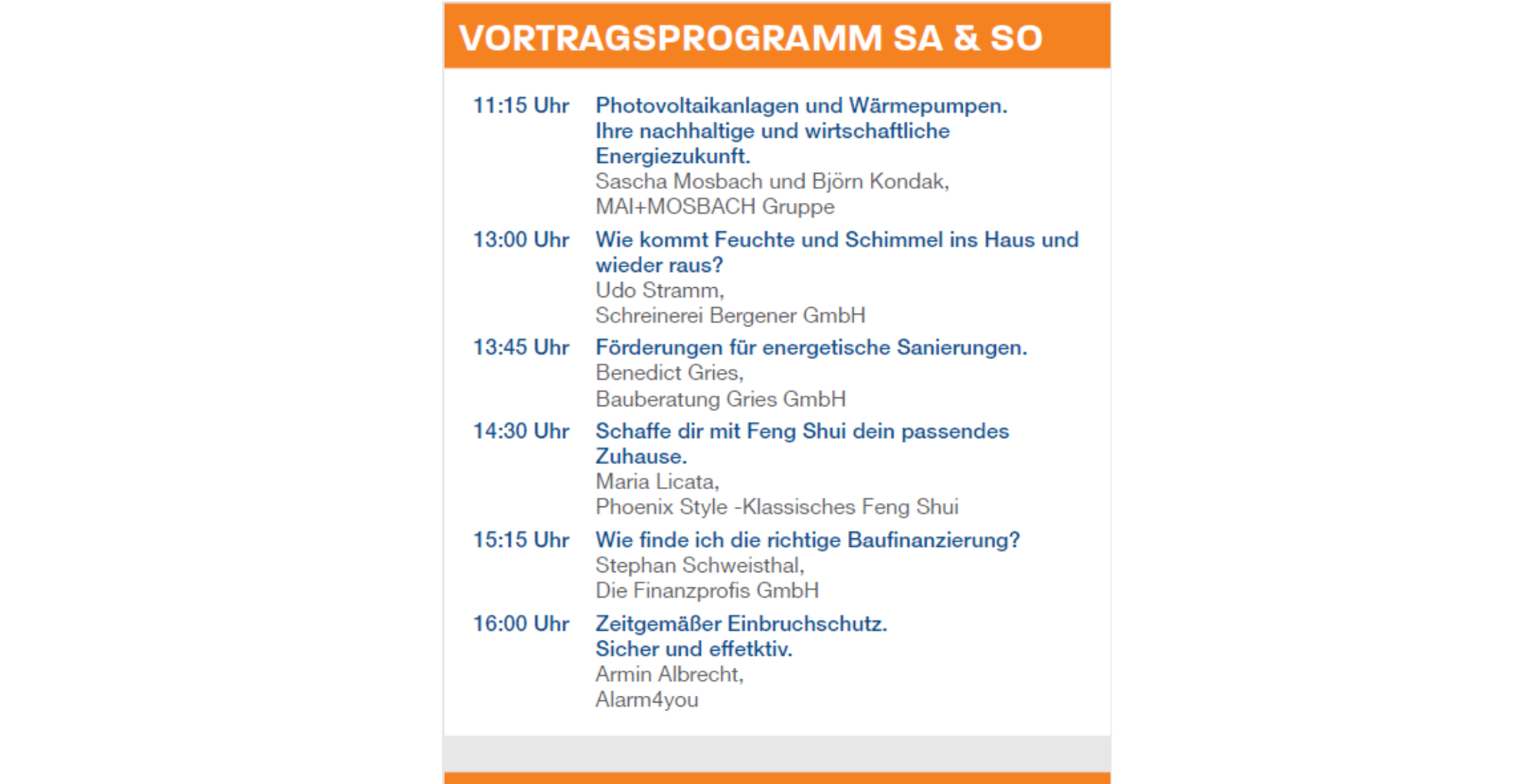 Antworten rund ums bestehende oder geplante Zuhause liefern an beiden Messetagen rund 50 renommierte Unternehmen aus der Region, welche ihre Produkte und Dienstleistungen vorstellen.