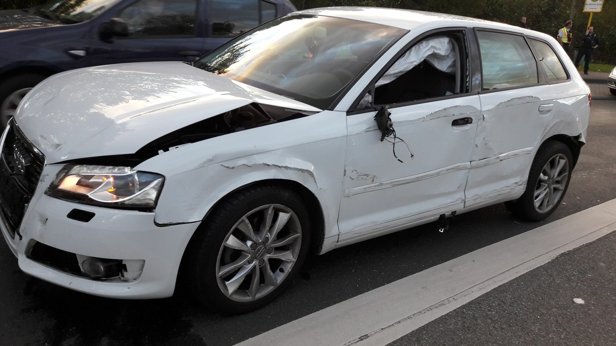 Davon nicht beeindruckt machte sich die 36-Jährige über einen angrenzenden Gehweg und Grünstreifen aus dem Staub. Dabei touchierte sie erneut den VW Passat. Nach etwa 300 Metern stieß sie im Grünstreifen gegen eine Straßenlaterne und krachte in einer Kurve im Bereich der Moselauen erneut in einen VW Golf. Dieser wurde durch den Aufprall über die Gegenfahrbahn in eine angrenzende Grünfläche geschleudert. Fast wäre der Golf mit einem dort stehenden Baum kollidiert. Etwa 100 Meter weiter kam der stark beschädigte Audi A 3 schließlich zum Stehen.