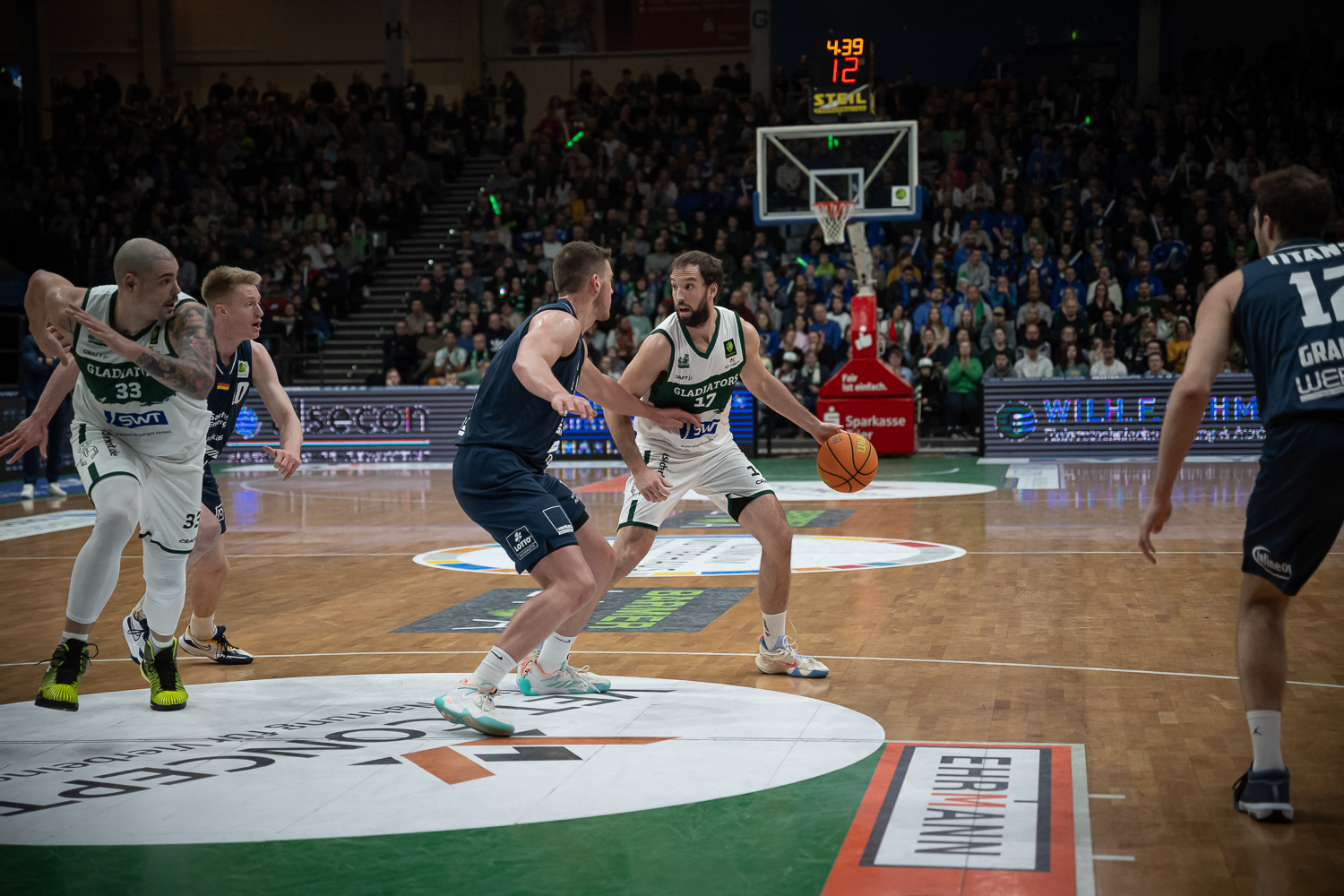 Der Beginn der zweiten Verlängerung verlief auf Trierer Seite deutlich fokussierter. Zwar wollte der Dreier weiterhin nicht hochprozentig fallen, aber auch die Paderborner ließen hier deutlich nach. Jordan Barnes im Eins-gegen-Eins und erneut JJ Mann von außen sorgten bei einer Minute Restzeit für die 92:87 Führung der Gladiatoren. Ein weiteres And-One brachte Paderborn nochmal auf 92:90 heran, die dann folgende Chance auf den erneuten Ausgleich ließ Big Man Jubril Adekoya mit einem vergebenen Korbleger liegen. So entschieden die RÖMERSTROM Gladiators Trier die Nervenschlacht gegen Paderborn letztlich 94:93 für sich.