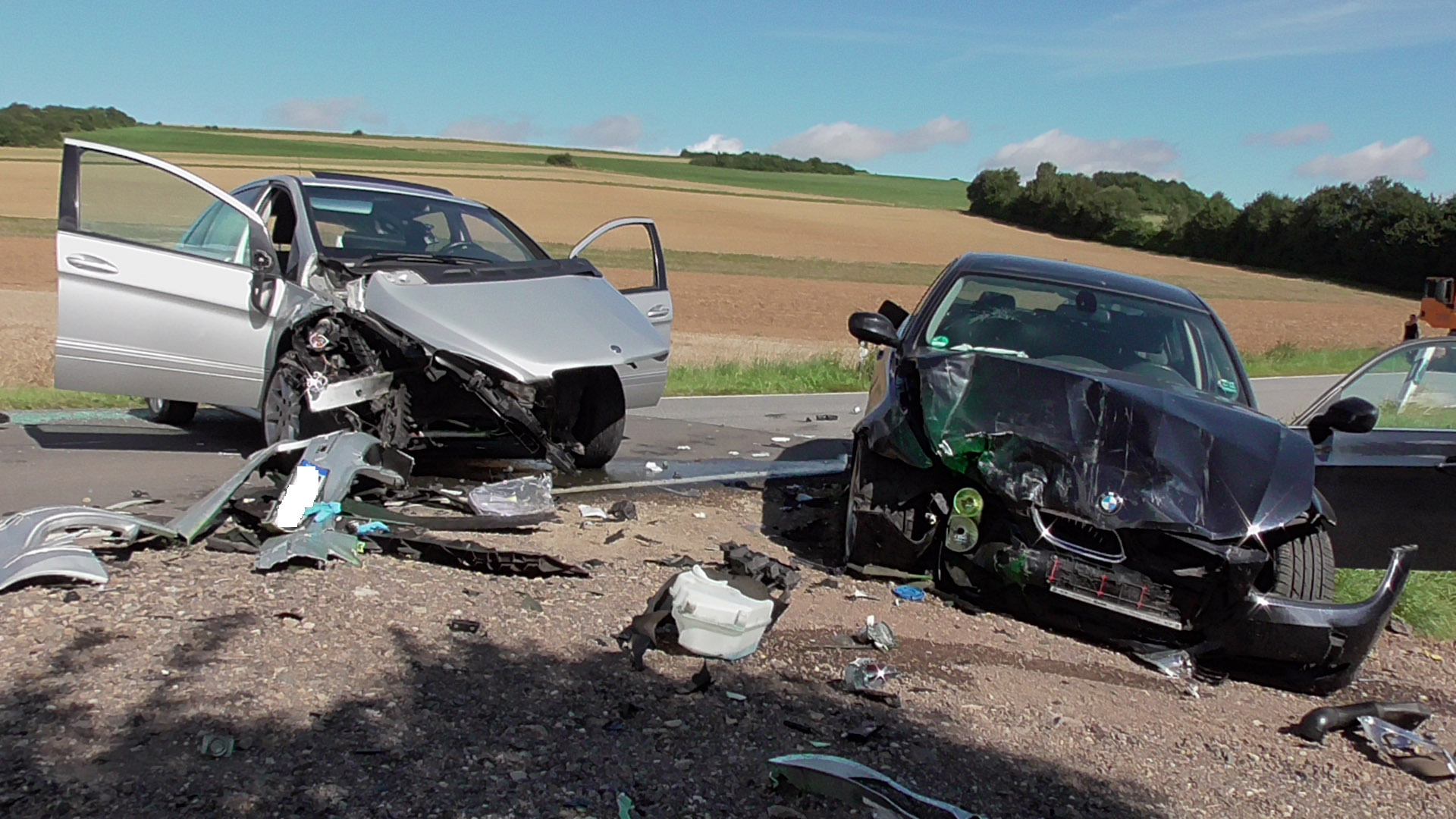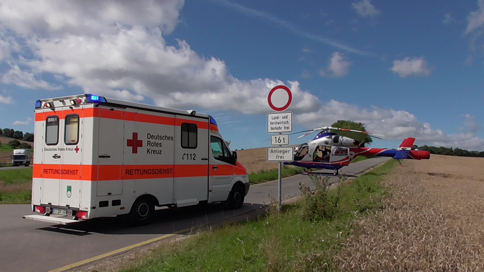 Laut Polizeiangaben wollte ein älteres Ehepaar aus einem landwirtschaftlichen Weg auf die Kreisstraße abbiegen. Hierbei nahm das Ehepaar einem anderen Auto allerdings die Vorfahrt. Die beiden Fahrzeuge krachten frontal ineinander. Das Ehepaar sowie der Fahrer des anderen Autos wurden dabei schwer verletzt. Alle drei wurden vor Ort vom Notarzt versorgt und ins Krankenhaus gebracht. Die Feuerwehr sicherte die Unfallstelle ab und räumte sie. An den beiden Fahrzeugen entstand Totalschaden. Es bildeten sich lange Rückstaus. Die Strecke war für den Verkehr etwa eine Stunde voll gesperrt. Im Einsatz waren das DRK Ehrang und Echternacherbrück sowie die Malteser aus Welschbillig und der Rettungshubschrauber Air Rescue 3 aus Luxemburg. Auch die Feuerwehr Kordel und die Polizei waren im Einsatz. Fotos: Agentur Siko