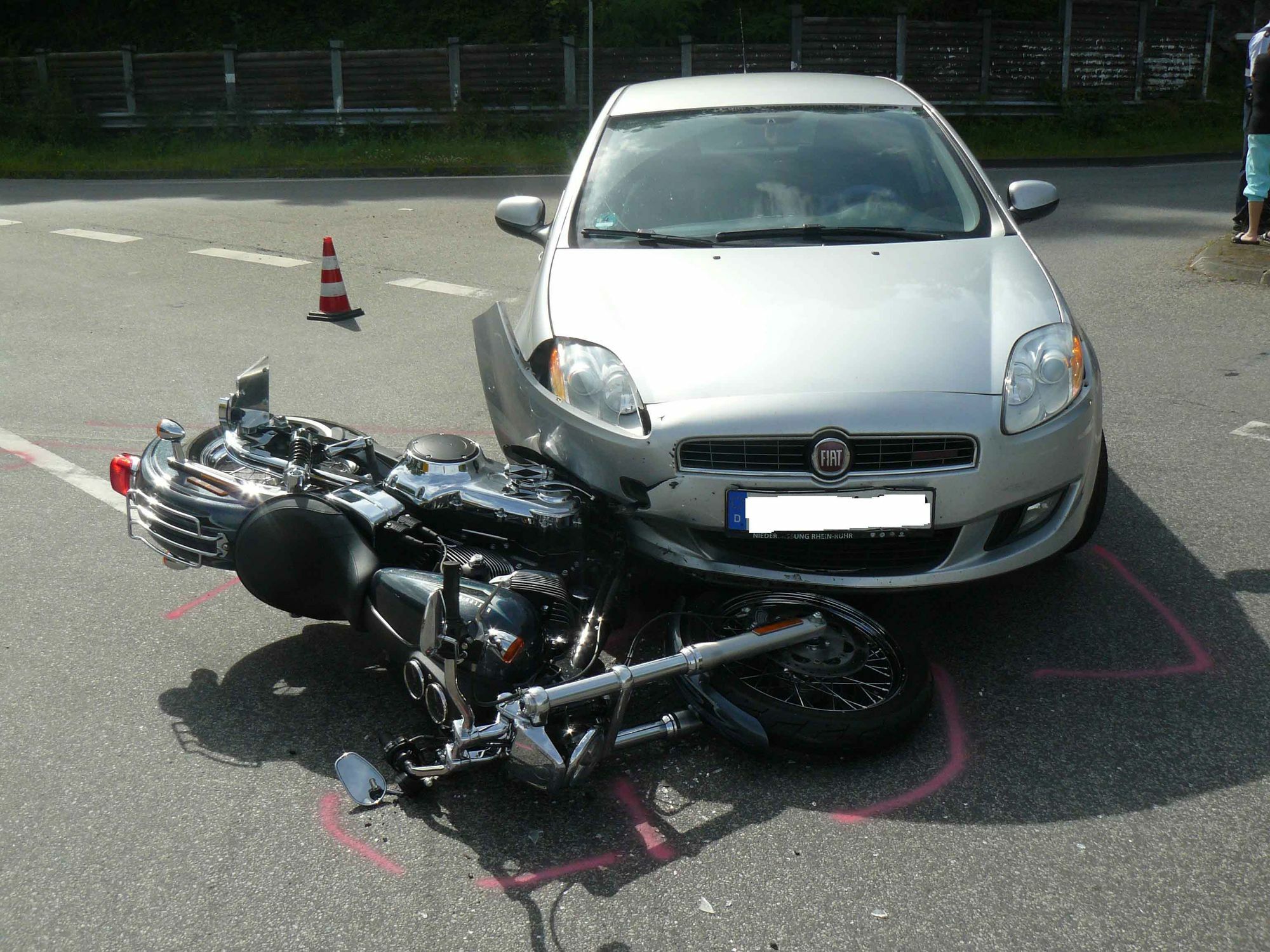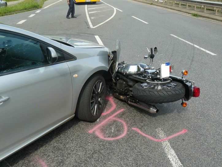 Auto und Motorrad stoßen zusammen: ein Verletzter