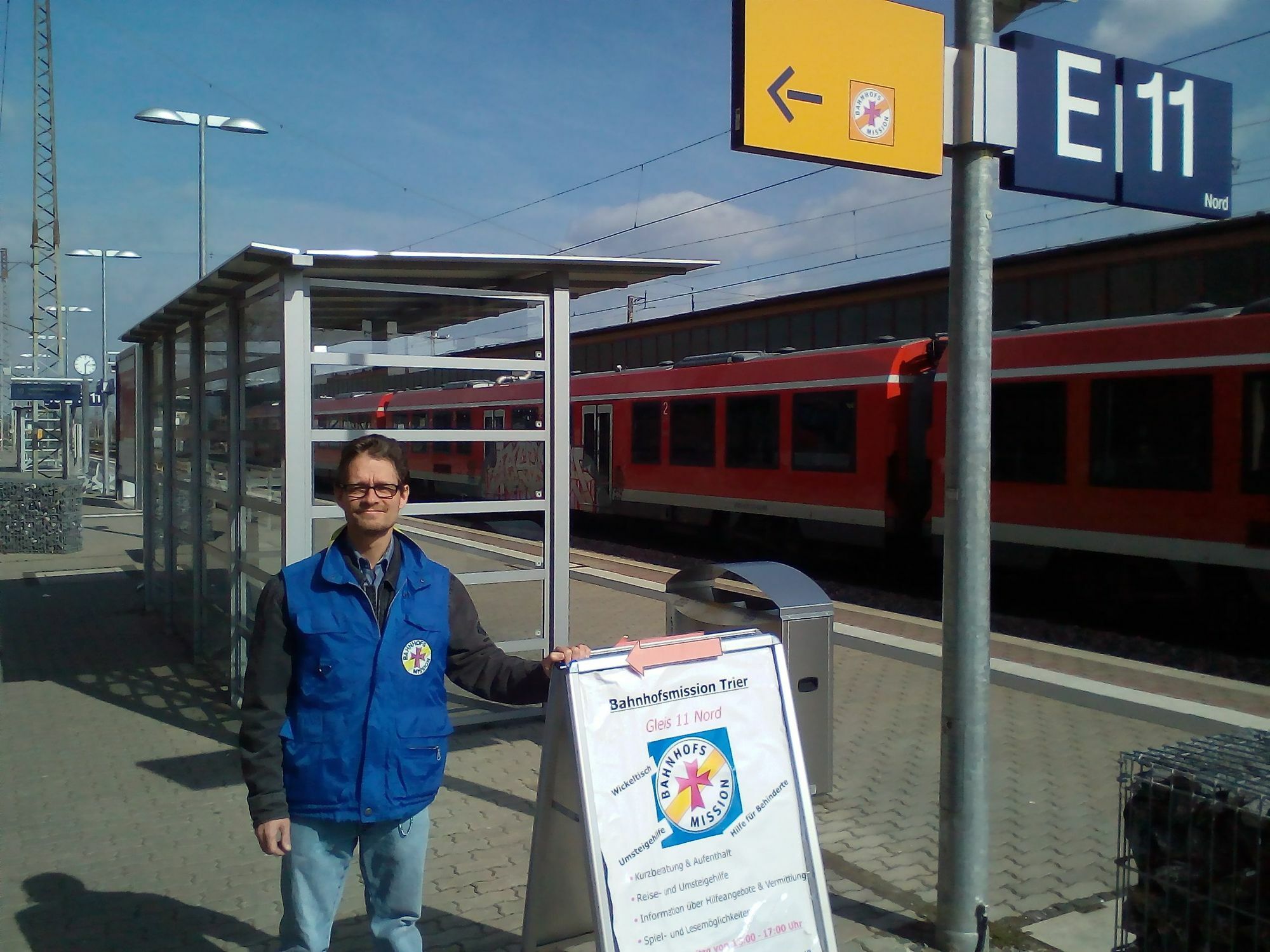 Wenn er seiner Arbeit eine Überschrift geben sollte, sagt Friebel, dann wäre das: "Kein Tag ist wie der andere". Denn wenn er zur Bahnhofsmission an Gleis 11E am Trierer Hauptbahnhof komme, dann wisse er nicht, was ihn erwarte. "Man lernt so viele verschiedene Menschen kennen." Manchmal müsse er improvisieren oder sich mit Händen und Füßen verständigen, wenn Asylsuchende auf dem Weg zur Aufnahmestelle in Trier Zwischenstation im Bahnhof machen. "Das geht irgendwie", sagt er und lacht.