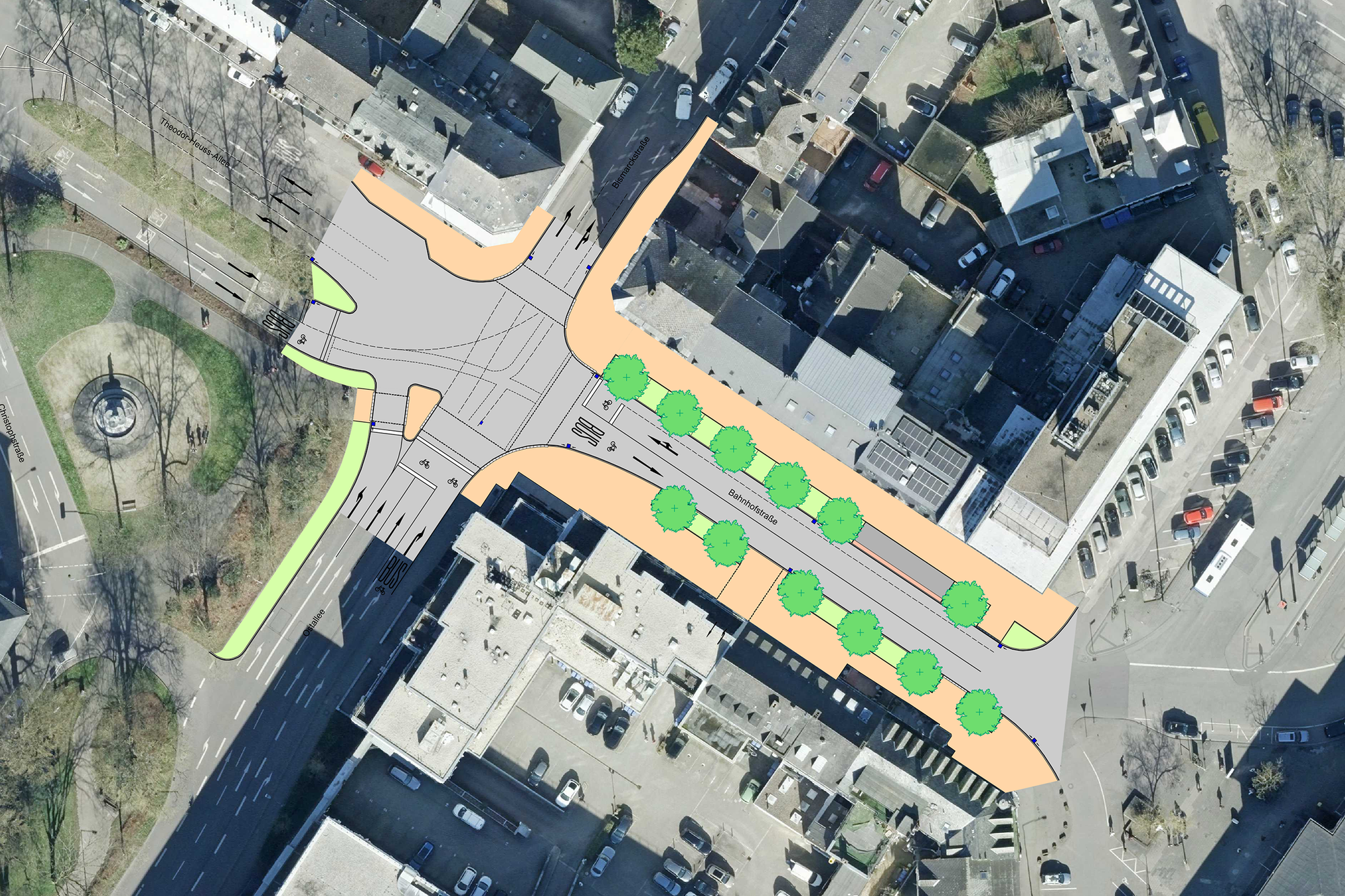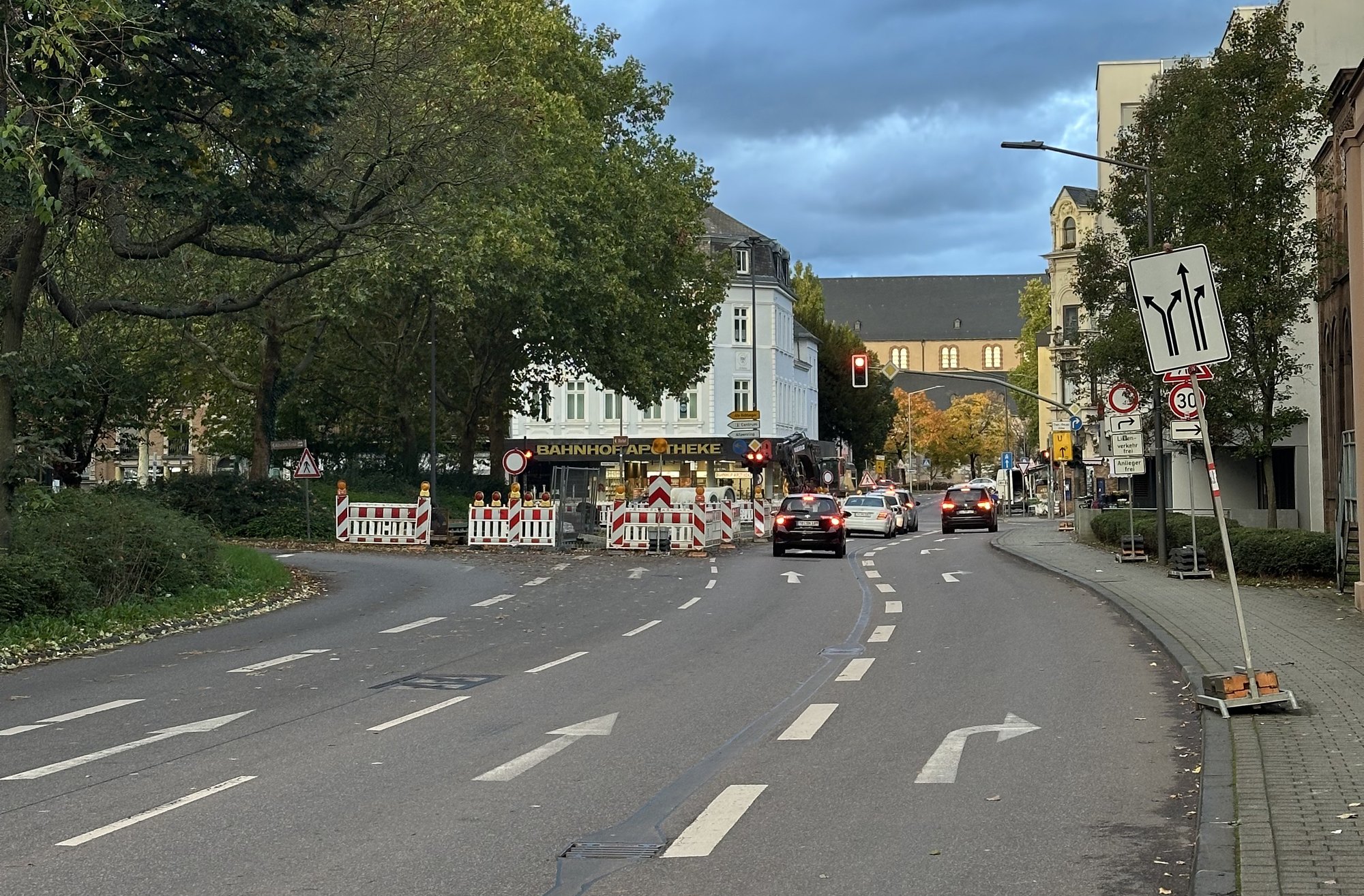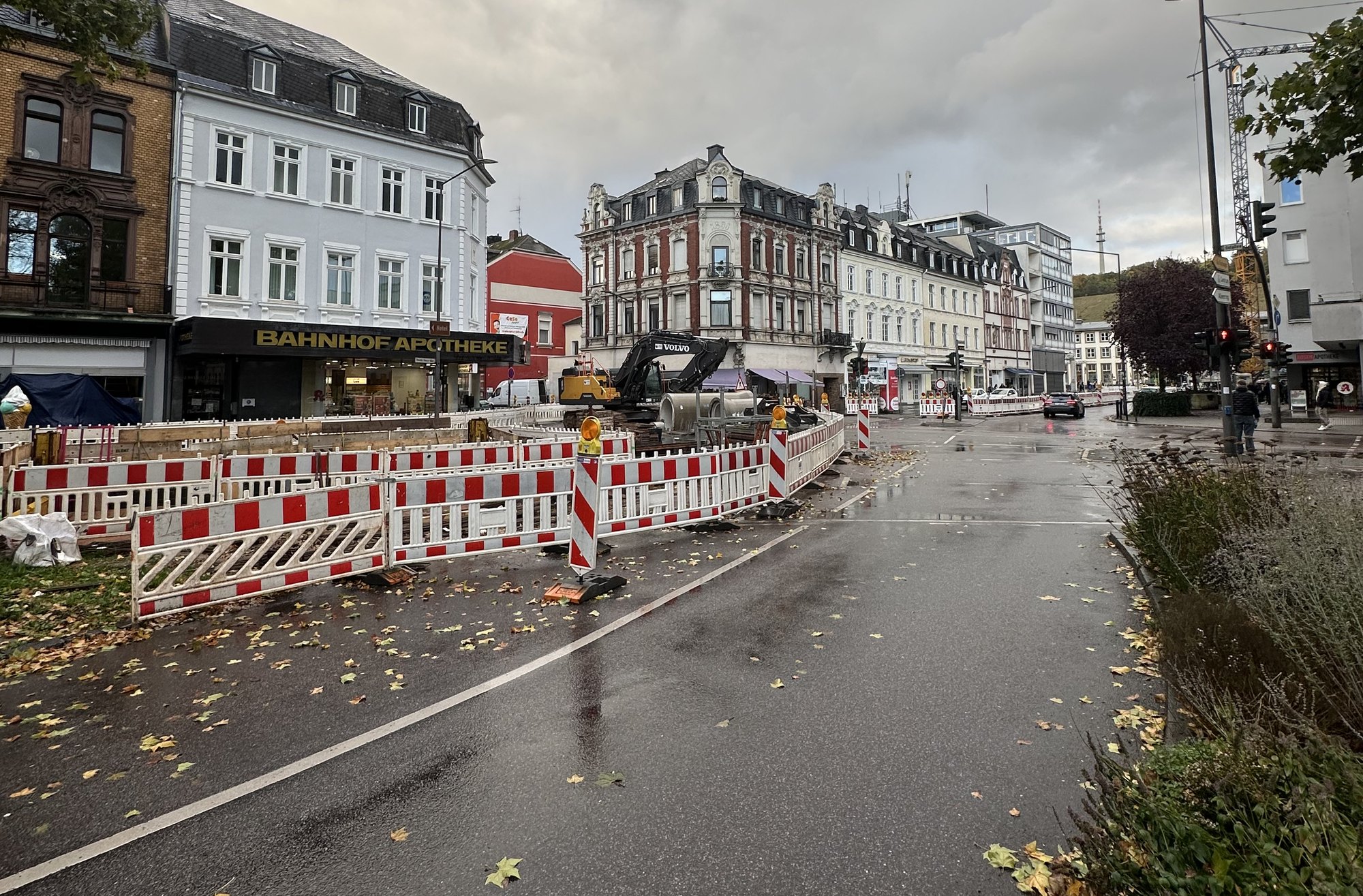 Im Dezember 2024 mussten Teile der Bahnhofstraße und des Knotenpunkts Ostallee/Theodor-Heuss-Allee kurzfristig gesperrt werden, weil im Untergrund schwere Schäden an einem Mischwasserkanal entdeckt wurden. Die Sperrungen und Sanierungsarbeiten dauern voraussichtlich noch bis Mitte 2026. Im Anschluss will die Stadt die Gelegenheit nutzen, um den Straßenzug nachhaltig aufzuwerten, ohne dass die Fahrbahn erneut aufgebrochen werden muss. Im Ergebnis erhält die bisher schmucklose Bahnhofstraße einen Grünflächenanteil von 15 Prozent. Baudezernent Thilo Becker erklärt: „Damit soll am Hauptbahnhof ein attraktiver und einladender Eingang geschaffen werden, der die Verbindung zu Alleenring und Innenstadt schafft und zu einer deutlichen Aufwertung des gesamten Bahnhofsumfelds führt.“