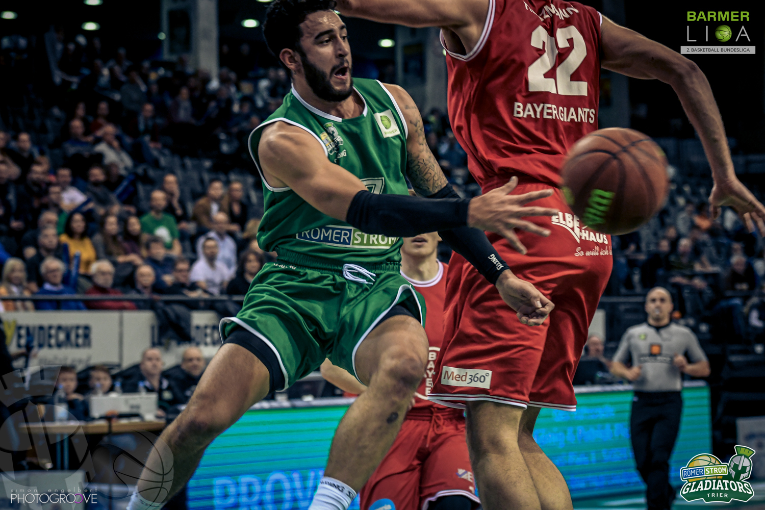 Rupert Hennen, Jordan Geist, Kyle Dranginis, Stefan Ilzhöfer und Till Gloger, so lautete die Starting Five, die Triers Headcoach Christian Held im Heimspiel gegen die Bayer Giants Leverkusen aufs Parkett schickte. Im Samstagsspiel in der Barmer 2. Basketball Bundesliga mussten die Trierer zwar auf ihren Kapitän Simon Schmitz (Ödem am Sprunggelenk) verzichten, konnten aber Thomas Grün nach überstandenem Muskelfaserriss zurück auf dem Spielfeld begrüßen.